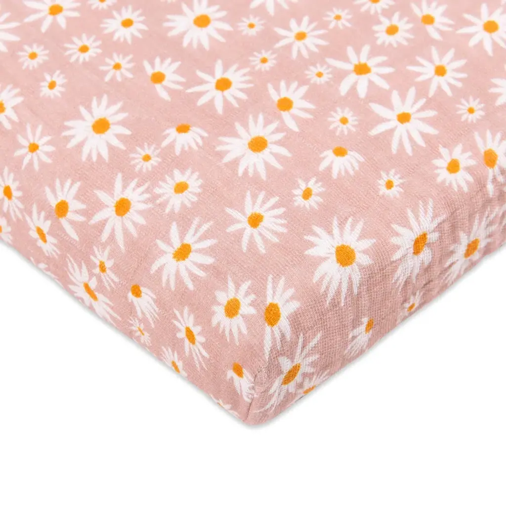 Daisy Muslin All-Stages Midi Crib Sheet In Gots Certified Organic Cotton