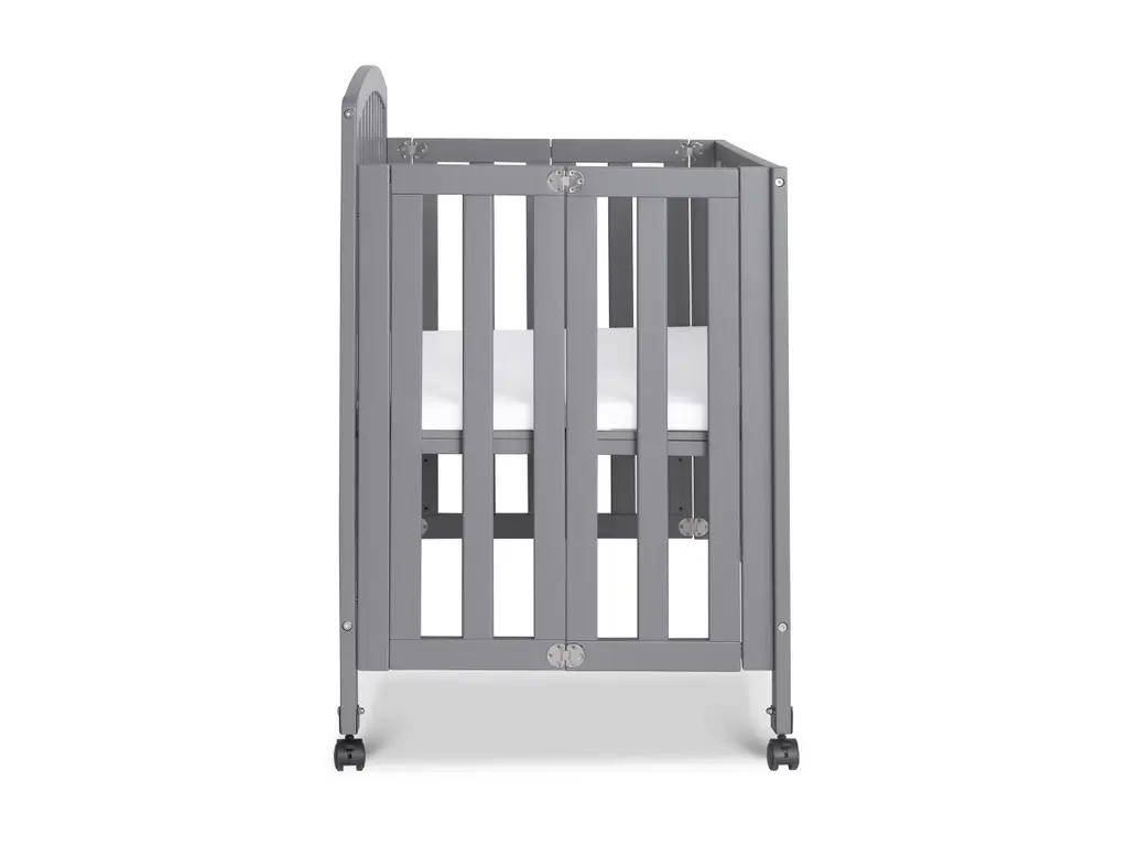 The Dylan Folding Portable Mini Crib is the perfect fit for urban living or to leave at grandparents' home. Its smaller size and rolling wheels allow you to move the crib freely throughout the home. The Dylan’s folding functionality allows you to easily store the crib when not in use or to take with you when you travel. This mini crib is both durable and lightweight and converts to a twin bed to grow with your baby beyond the nursery years.
