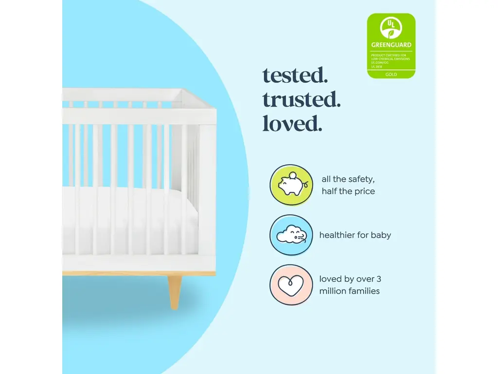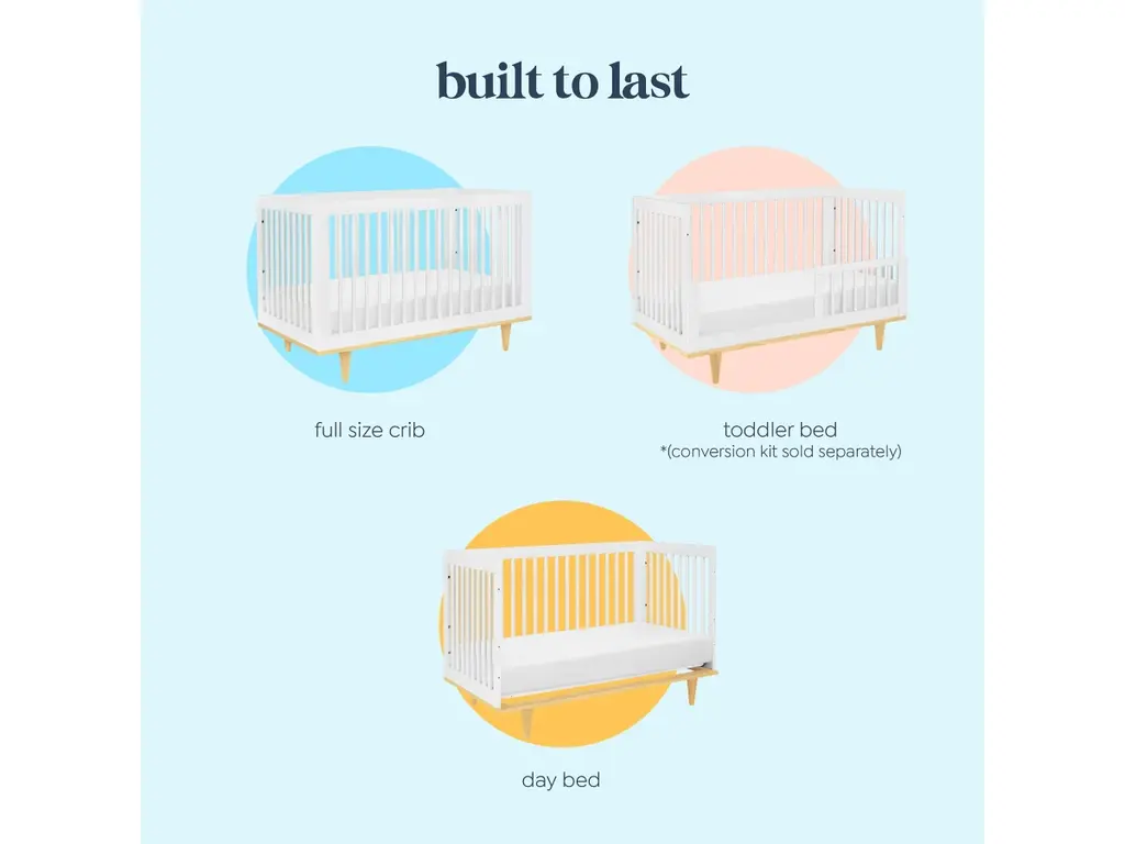 The Marley 3-in-1 Convertible Crib, with its clean lines, mid-century style, and playful legs, is the perfect contemporary centerpiece for any modern nursery. Straight slats are designed to be sleek and simple, while two-tone color choices add flair and variety. Like all daVinci cribs, the Marley Crib is built to last with convertibility from crib to toddler bed to day bed, and stationary sides to keep baby safe.