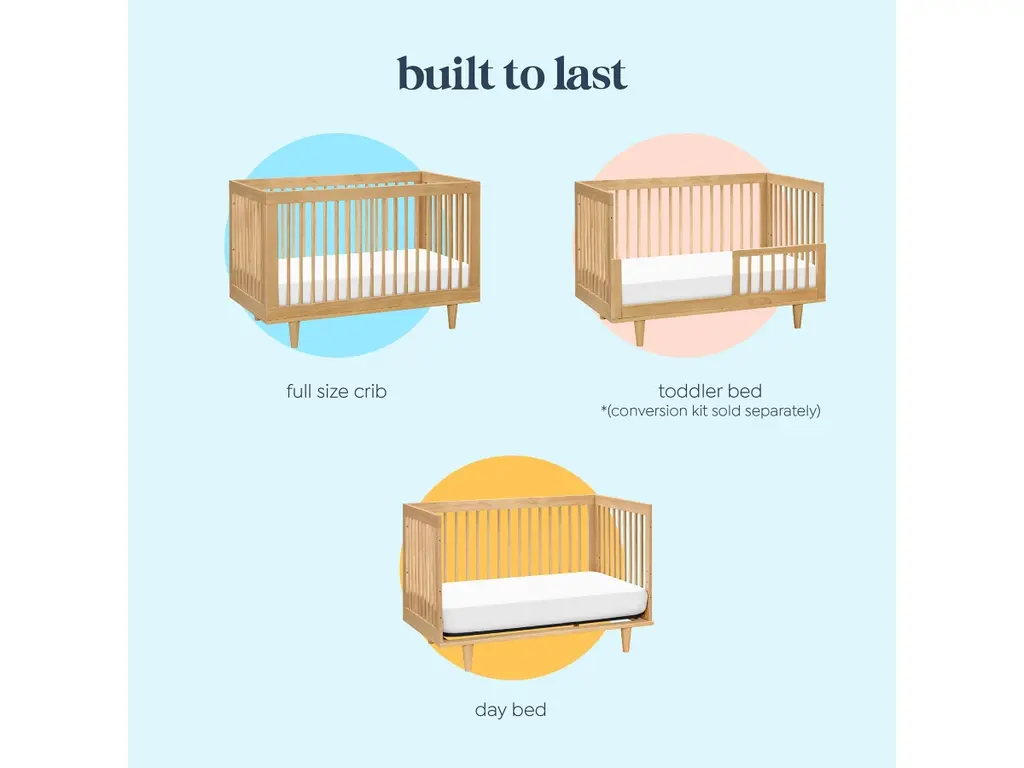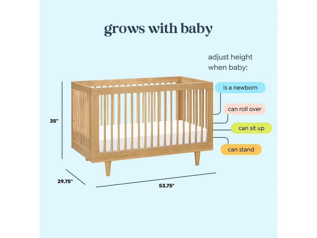 The Marley 3-in-1 Convertible Crib, with its clean lines, mid-century style, and playful legs, is the perfect contemporary centerpiece for any modern nursery. Straight slats are designed to be sleek and simple, while two-tone color choices add flair and variety. Like all daVinci cribs, the Marley Crib is built to last with convertibility from crib to toddler bed to day bed, and stationary sides to keep baby safe.