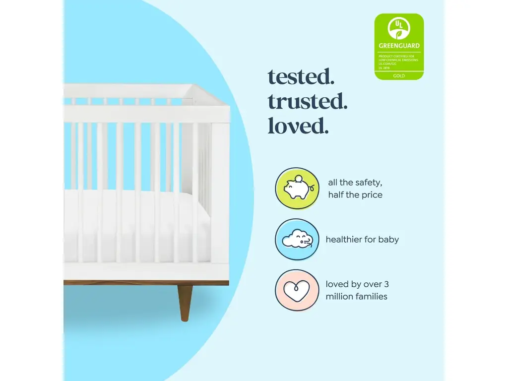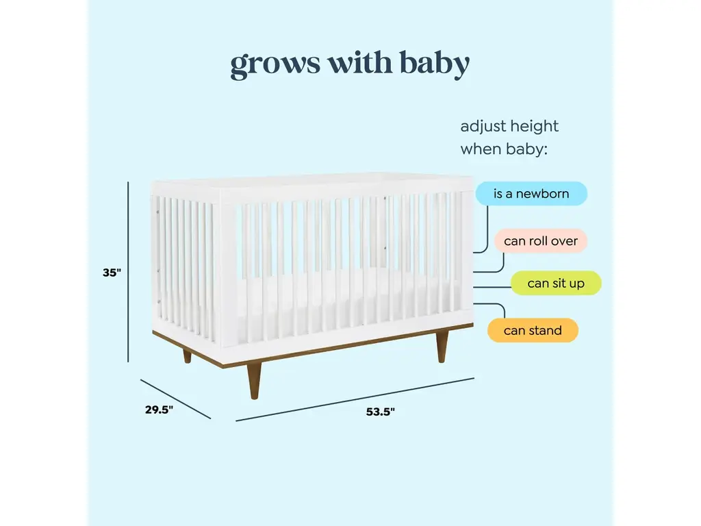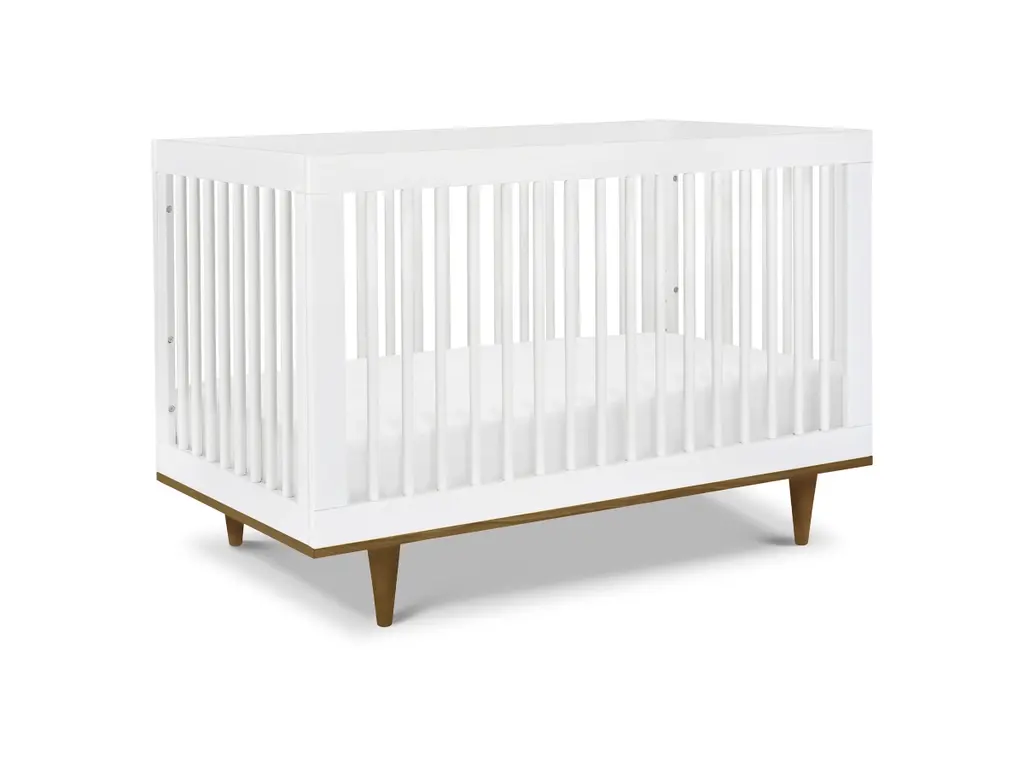 The Marley 3-in-1 Convertible Crib, with its clean lines, mid-century style, and playful legs, is the perfect contemporary centerpiece for any modern nursery. Straight slats are designed to be sleek and simple, while two-tone color choices add flair and variety. Like all daVinci cribs, the Marley Crib is built to last with convertibility from crib to toddler bed to day bed, and stationary sides to keep baby safe.