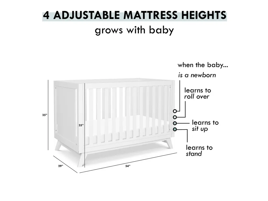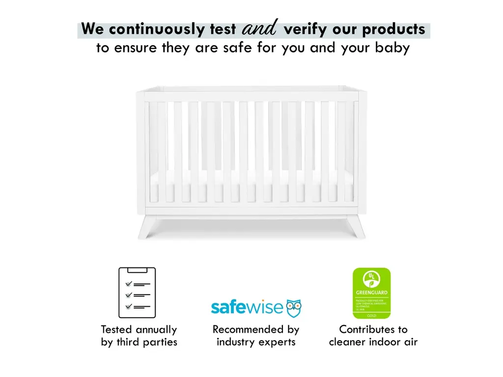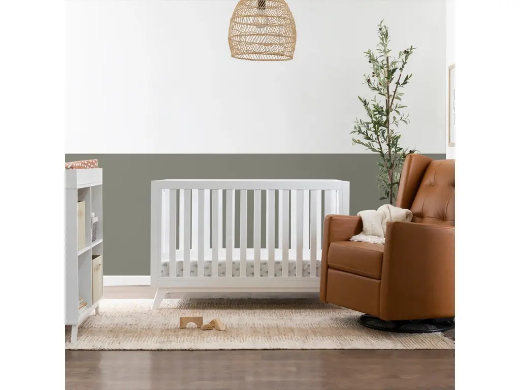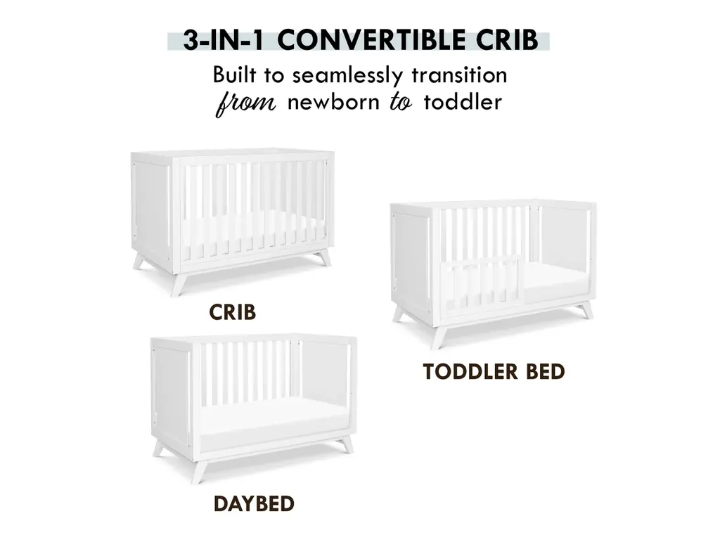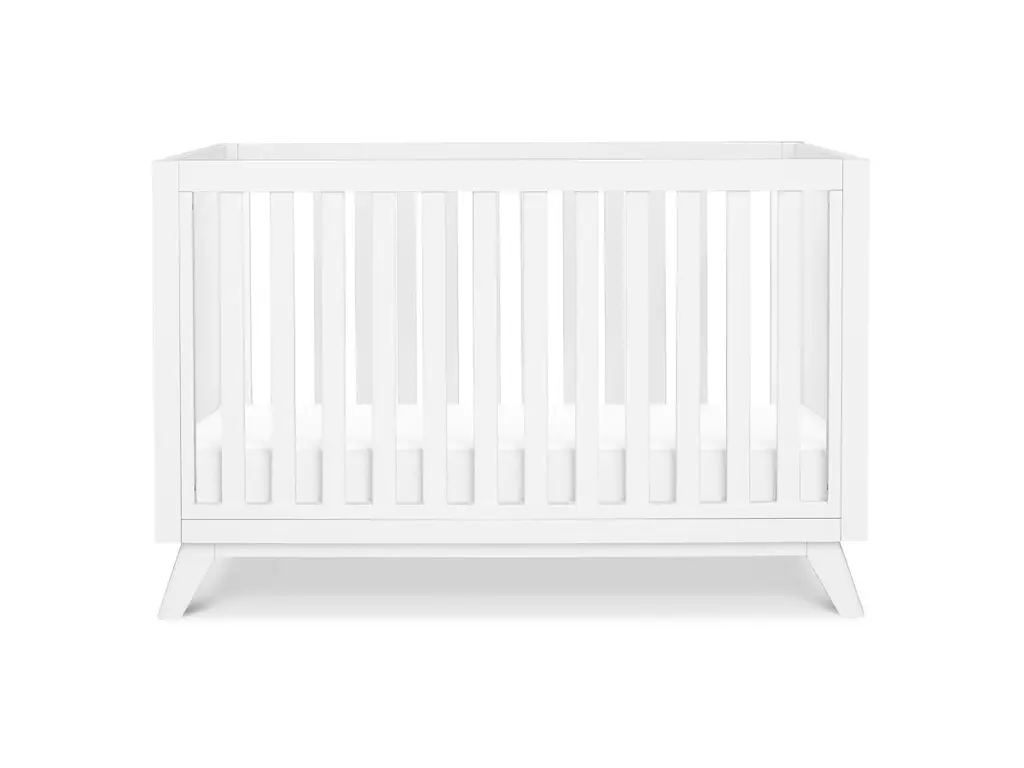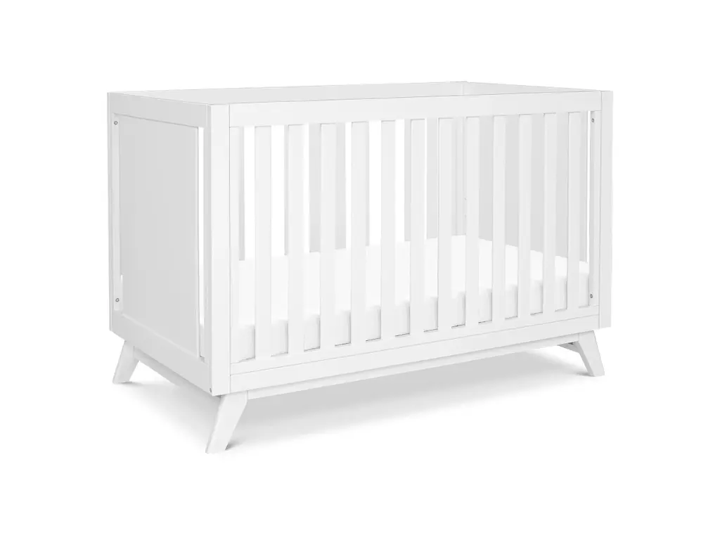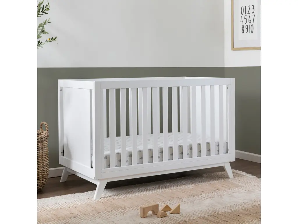 The Otto three-in-one convertible crib captures the timeless mid-century modern design with its clean lines, flared legs and solid wooden slats. Built to seamlessly transition from newborn to toddler, the crib has four different mattress heights. Coordinates with the Otto convertible changing table and cubby bookcase for a stylish and modern nursery.