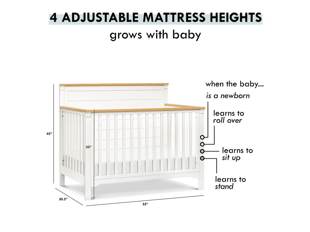 The Shea 4-in-1 Convertible Crib combines rustic and modern elements to create the statement crib of your dreams. Its simple silhouette features wood paneling, two-tone detailing, and charming molding that will grow with your baby from newborn to teen. Paired with its matching 6-drawer dresser, the Shea Collection ensures that every moment with your little one is filled with style and joy.