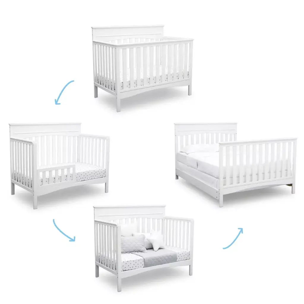 If you're looking to create a classic and charming nursery, the Skylar 6-in-1 Convertible Baby Crib from Delta Children was made for you. The crib's clean lines and handsomely crafted headboard with crown molding provides a timeless look that will take your little one from baby to big kid. This baby crib is outfitted with a three-position mattress height adjustment that can be lowered to accommodate your growing child as they learn to stand. There for every milestone, the Skylar 6-in-1 Crib is built from the best materials and converts into a toddler bed, daybed, sofa and full size bed with or without footboard--making it the only bed your child will ever need (Toddler Guardrail and Full Size Bed Rails sold separately). Coordinates with other items in the Skylar Collection from Delta Children. This crib is Greenguard Gold Certified, which means it meets or exceeds the most stringent chemical emissions standards to create a healthier home for your baby. It has been screened for more than 10,000 chemicals and VOCs that are known to pollute indoor air, certifying it contributes to cleaner indoor air. When you buy this crib, you can feel good about what you’re putting in your child’s nursery.