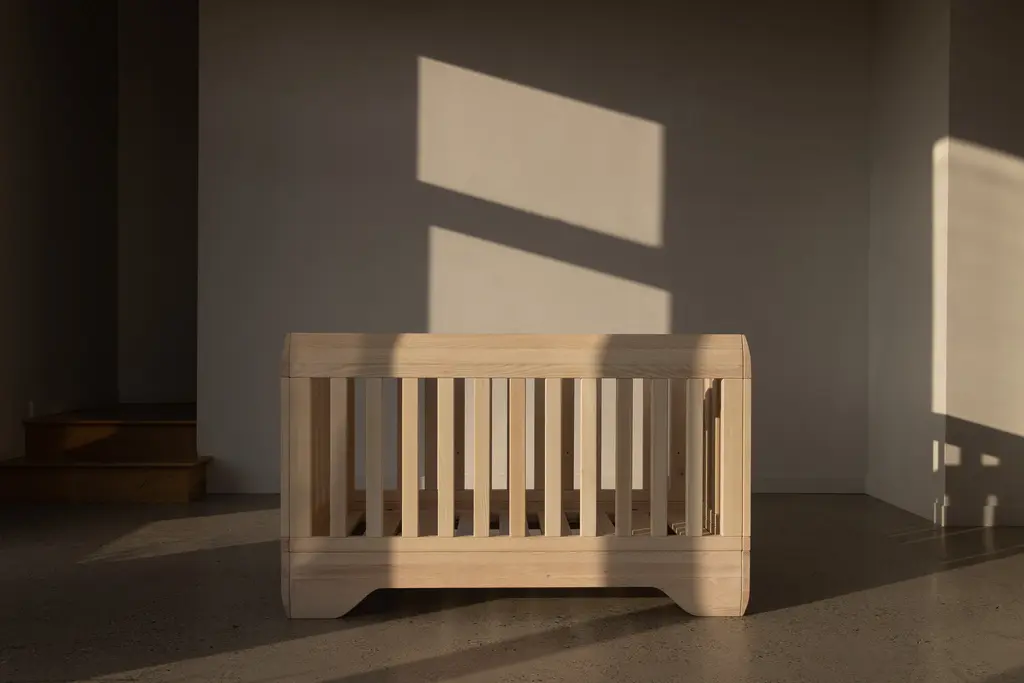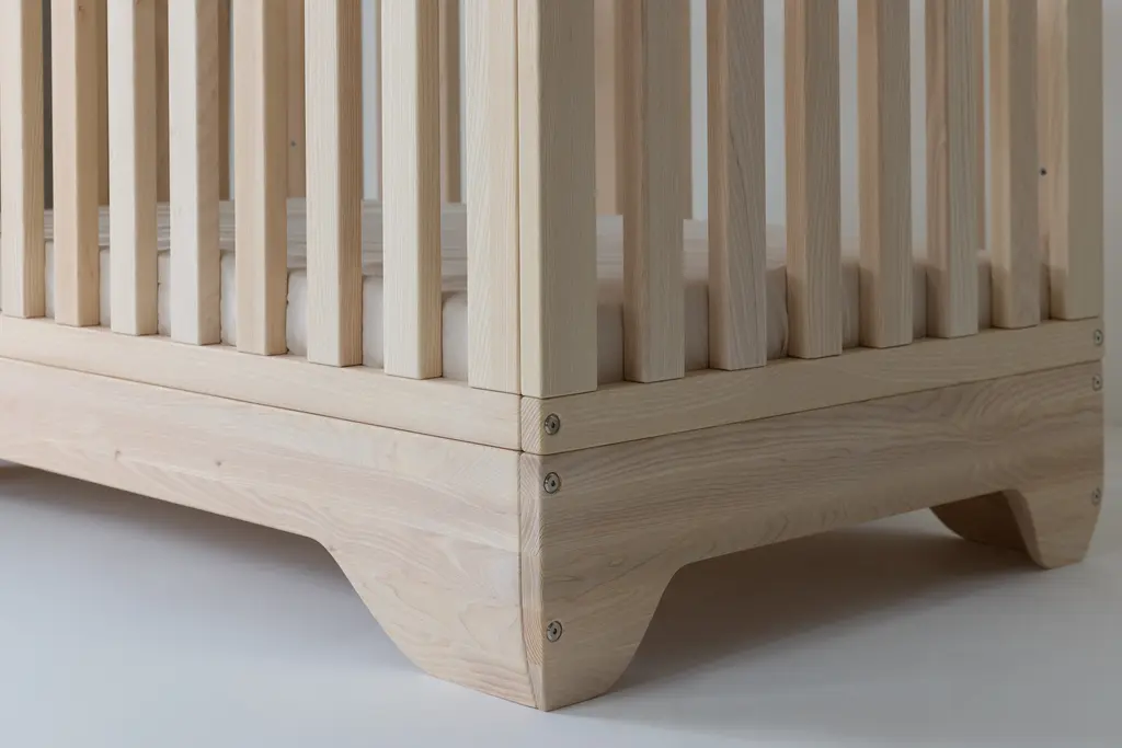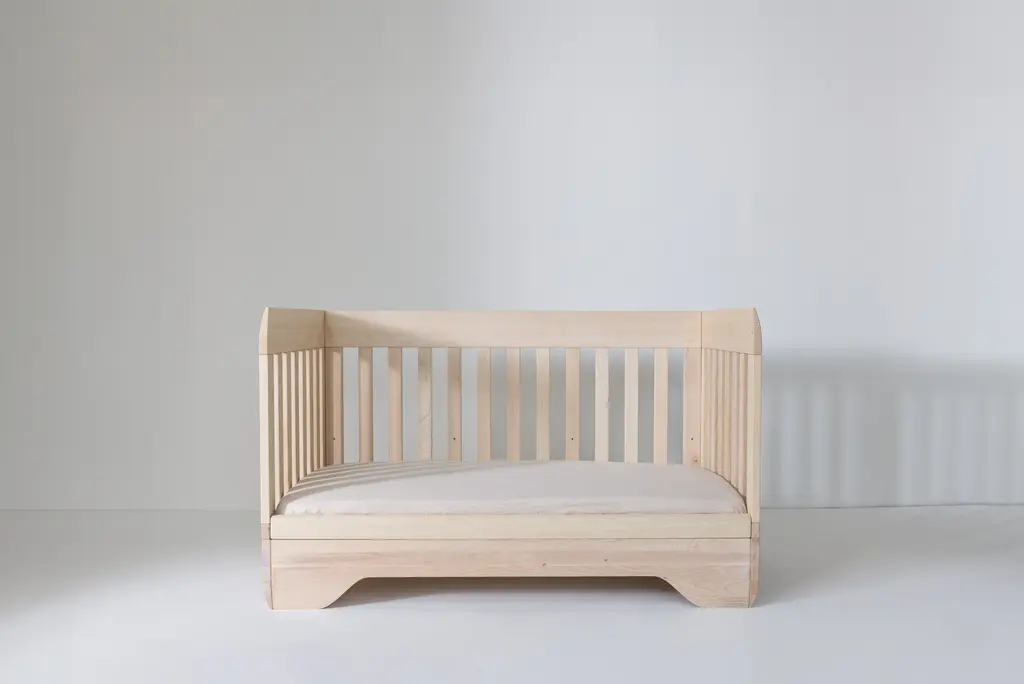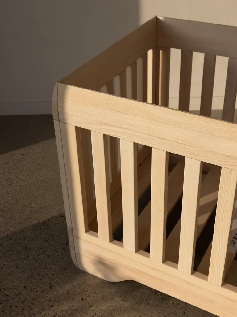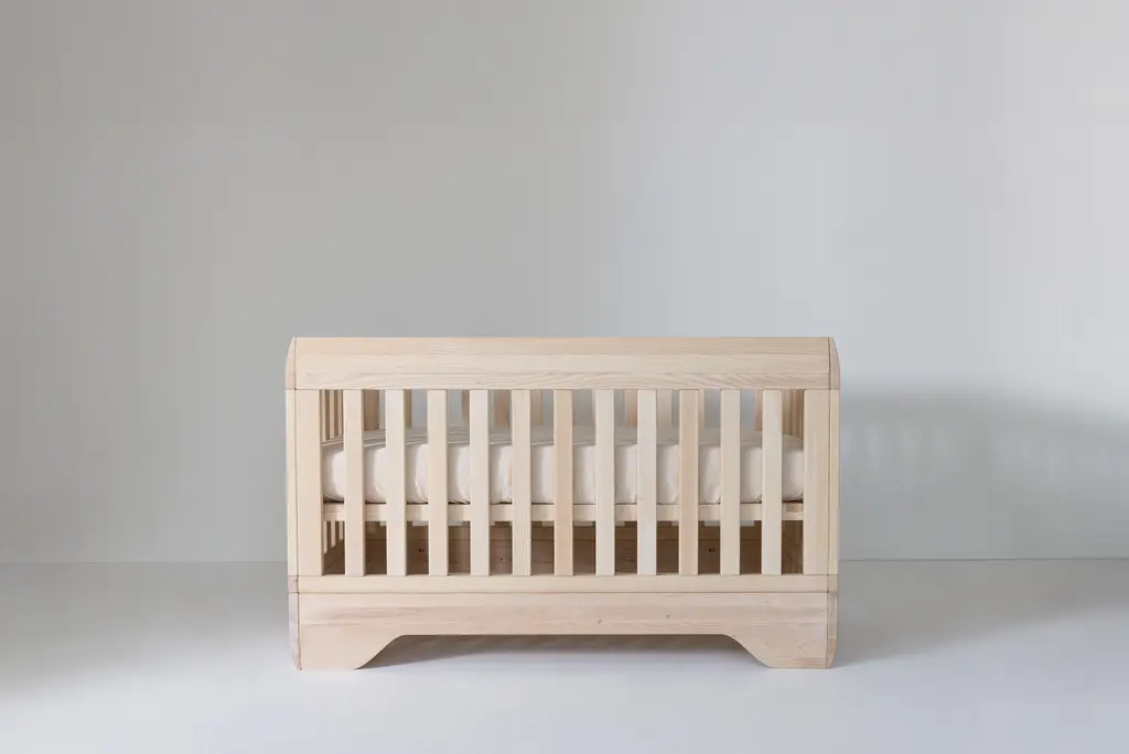 Bold yet streamlined, the Echo Crib’s continuous, fluid lines create a cocoon-like form that is nurturing and immersive. Made from broad expanses of sustainably-harvested solid Ash, the Echo Crib features a 2-point adjustable mattress height and converts as is to two different toddler bed styles: a 3-walled toddler bed or a platform-style toddler bed that offer usability well beyond the nursery years. Wood is hand-rubbed with Kalon Bare Finish, our premium, organic plant-based oil/wax finish and with proper care, made to last more than a lifetime.The Echo collection is made by a small team of master craftsmen in Europe using regenerative practices and natural materials. The production process and selected materials accentuate the singular beauty and unique character of each piece.