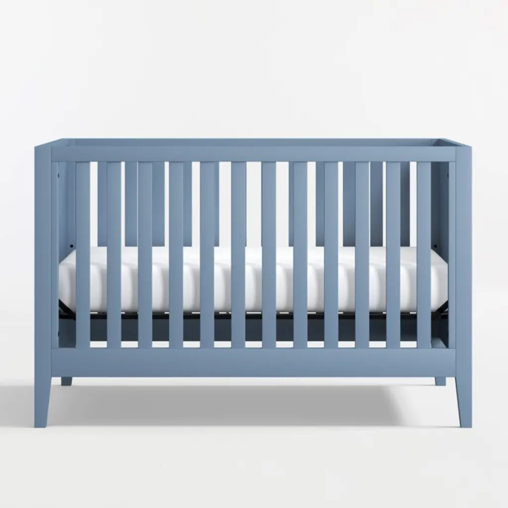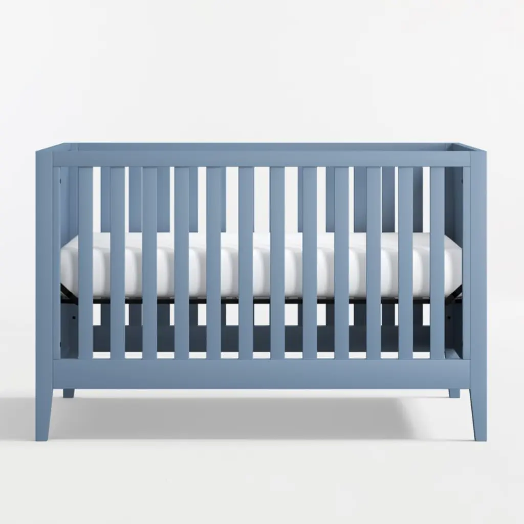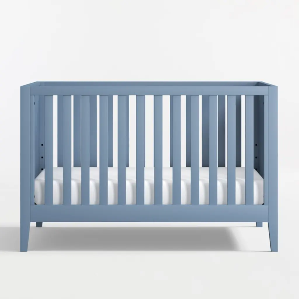 Designed with versatility and value in mind, our Ever Simple slate blue crib is defined by clean lines and effortless style. Its transitional design allows it to work well with decor that's contemporary, classic or eclectic. Plus, it can be accessorized with neutral crib bedding or more colorful designs. With an included rail, it converts to a toddler bed for even more longevity. To put it simply: It makes furnishing a nursery a real no-brainer.