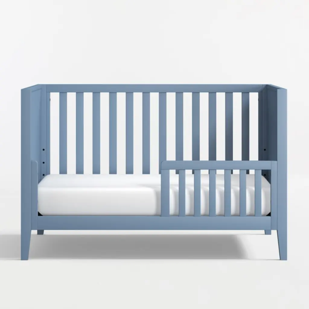 Ever Simple Slate Blue Wood Convertible Baby Crib With Toddler Bed Rail