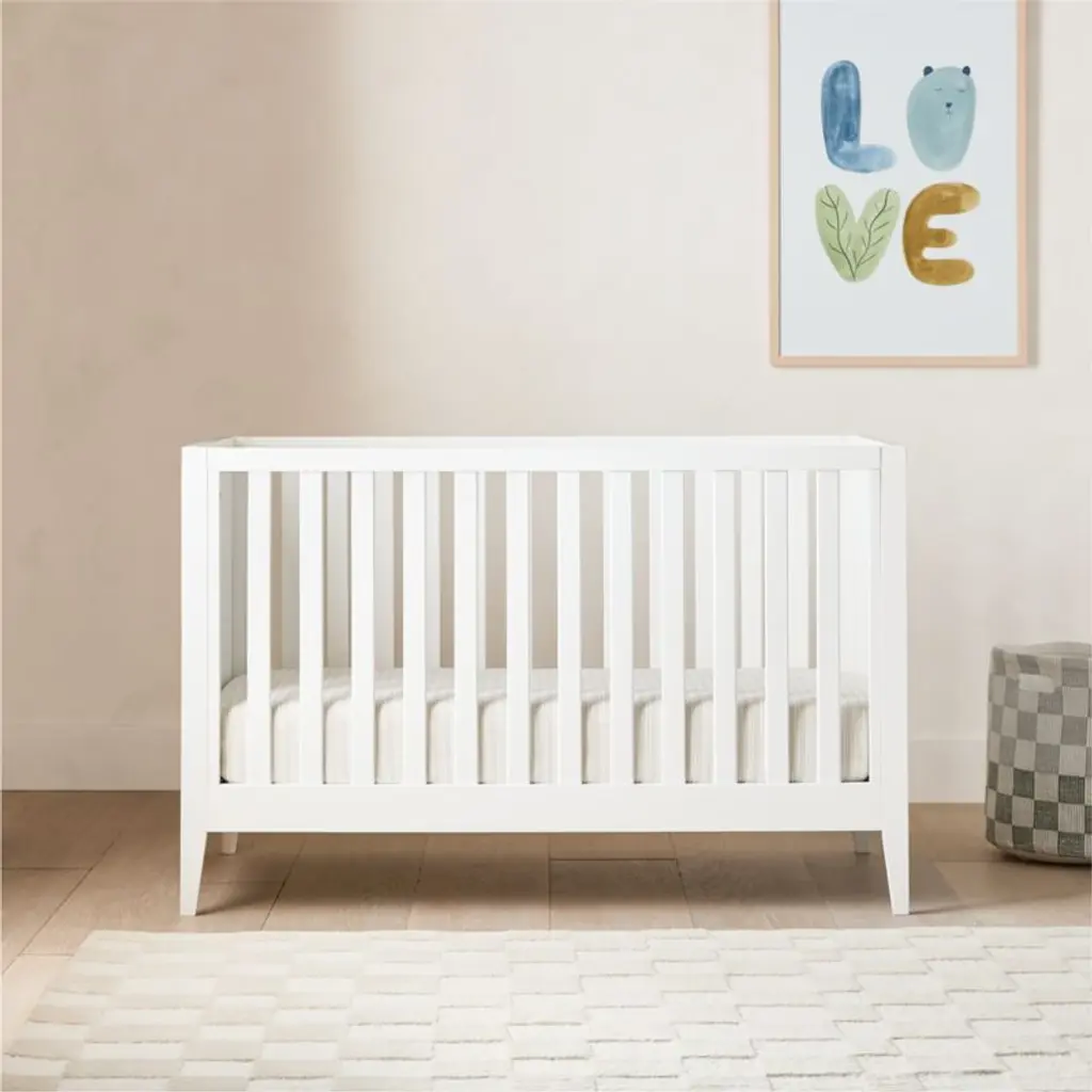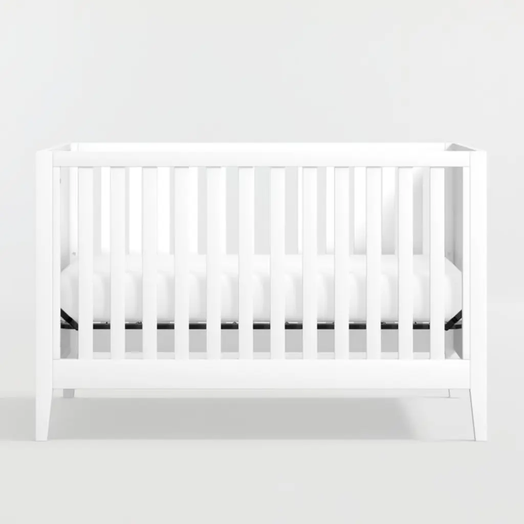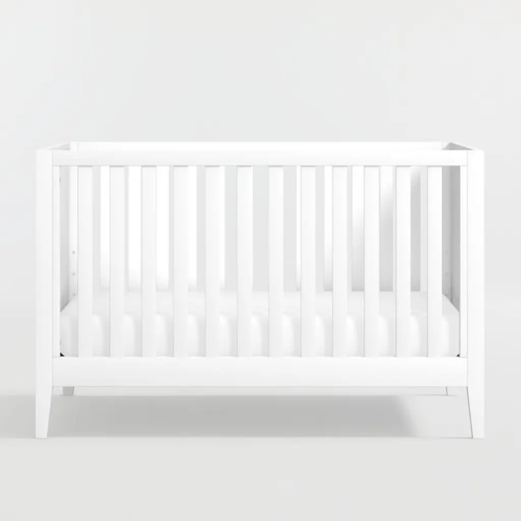 Designed with versatility and value in mind, our Ever Simple white crib is defined by clean lines and effortless style. Its transitional design allows it to work well with decor that's contemporary, classic or eclectic. Plus, it can be accessorized with neutral crib bedding or more colorful designs. With an included rail, it converts to a toddler bed for even more longevity. To put it simply: It makes furnishing a nursery a real no-brainer.