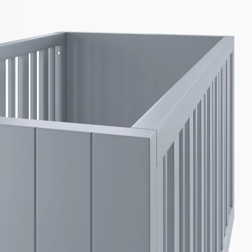 Clean lines, elevated paneling and an on-trend (and gender-neutral) mist blue hue: Count us in! Largely inspired by Scandinavian farmhouse design, our Finn kid's furniture collection blends rustic charm and modern minimalism without skipping a beat. With gently tapered oak legs in a natural finish, the crib's calming two-tone palette translates perfectly in a nursery, while the solid wood rails and spindles lend stability and timeless style that can be passed down through the years. It seamlessly grows with your little one thanks to the easy-to-assemble Toddler Bed Rail.Learn how to choose a crib.