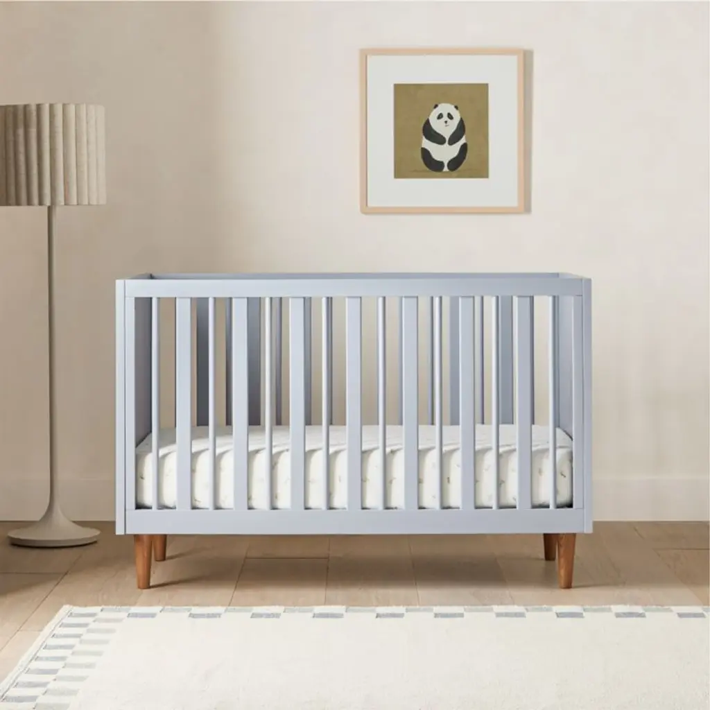 Finn Mist Blue Wood Convertible Baby Crib With Toddler Bed Rail