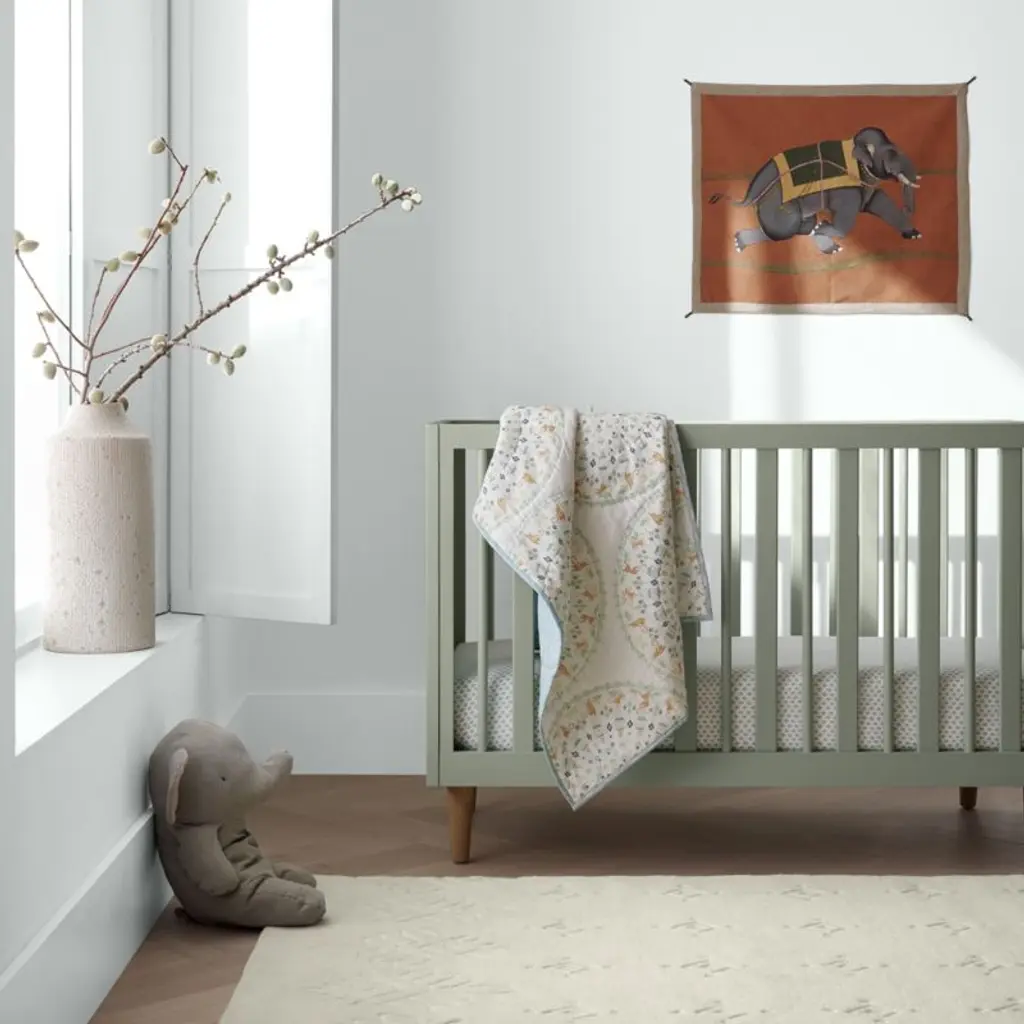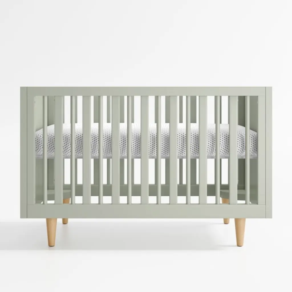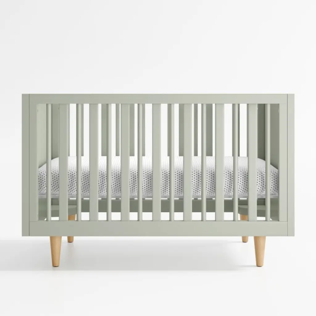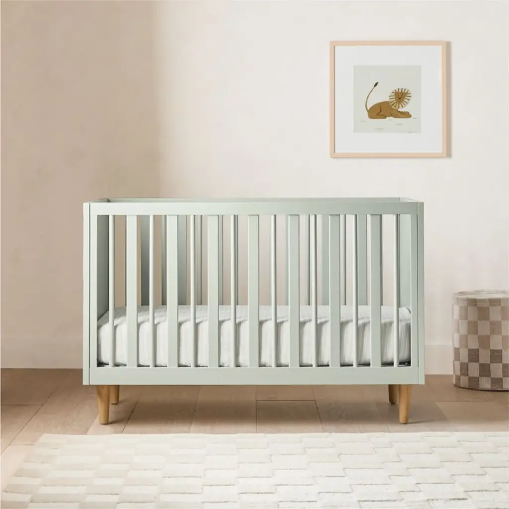 Finn Sage Green Wood Convertible Baby Crib With Toddler Bed Rail