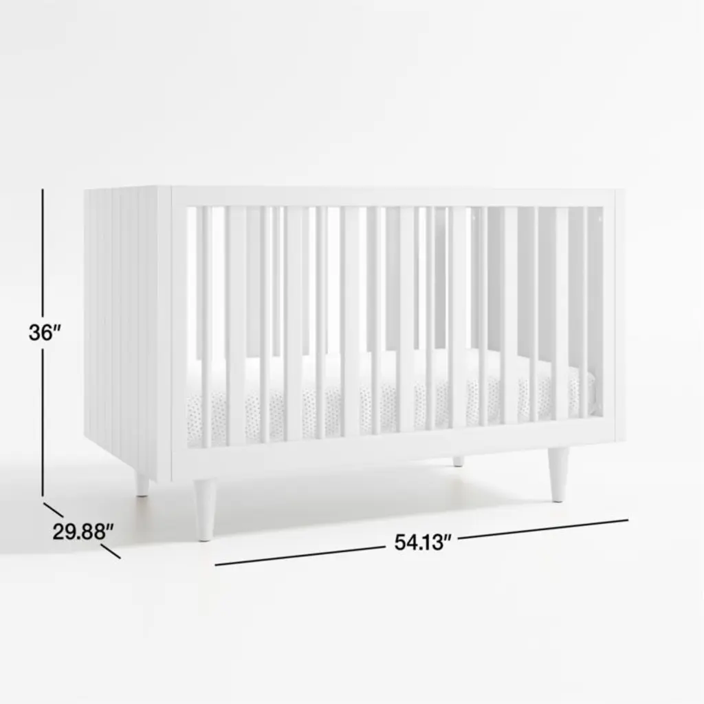 Clean lines, elevated paneling and an on-trend (and gender-neutral) sage hue: Count us in! Largely inspired by Scandinavian farmhouse design, our Finn kid's furniture collection blends rustic charm and modern minimalism without skipping a beat. With gently tapered oak legs in a natural finish, the crib's soothing two-tone palette translates perfectly in a nursery, while the solid wood rails and spindles lend stability and timeless style that can be passed down through the years. Plus, it can seamlessly grow with your little one, thanks to the easy-to-assemble Finn Toddler Bed Rail. Coordinates with any of our crib mattresses.Learn how to choose a crib.