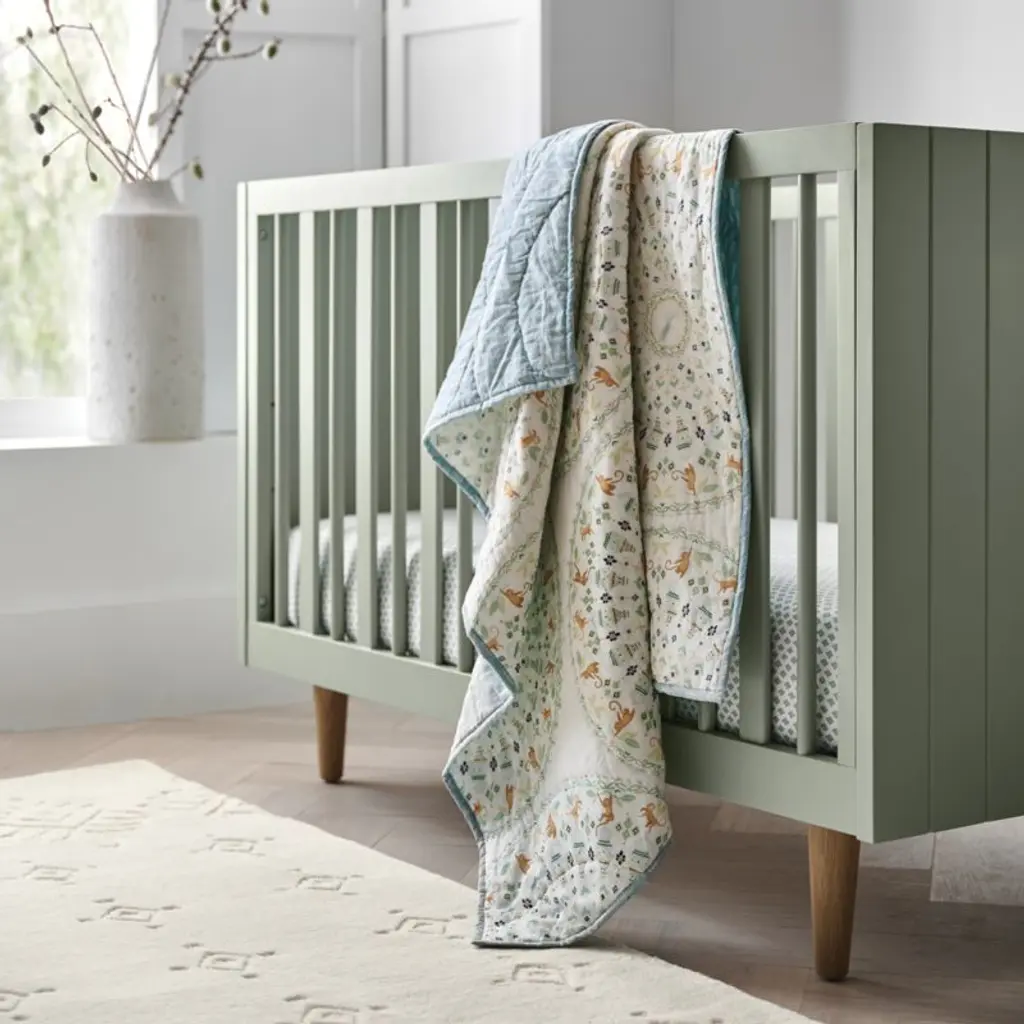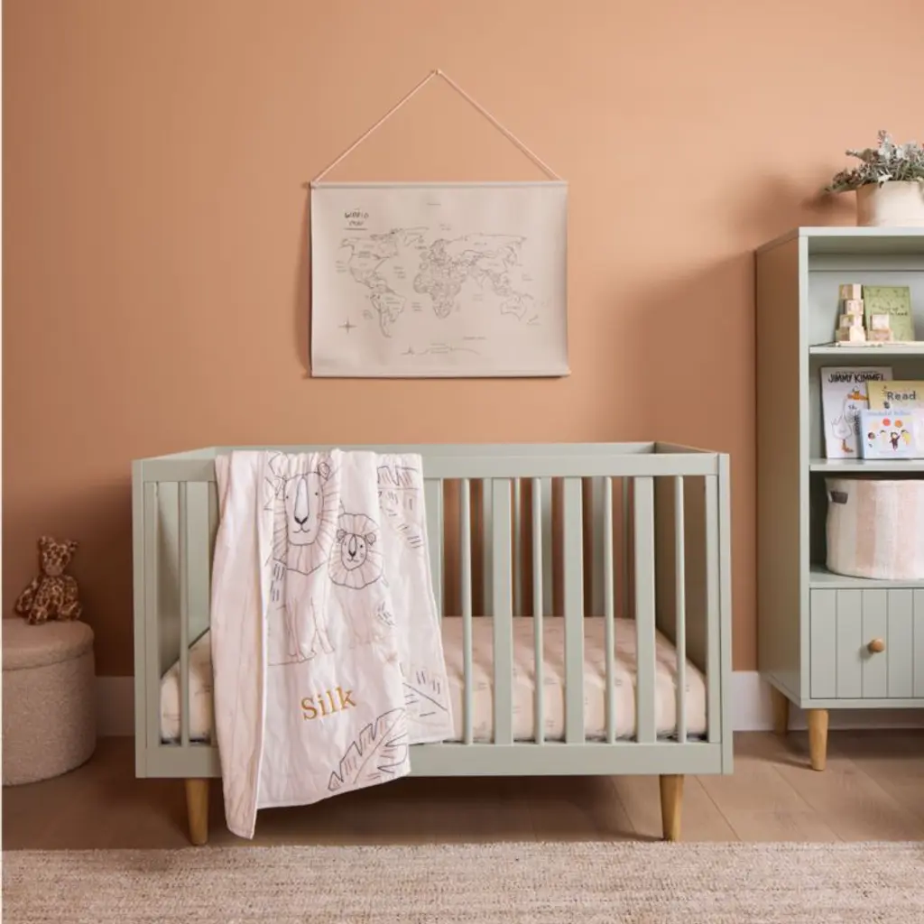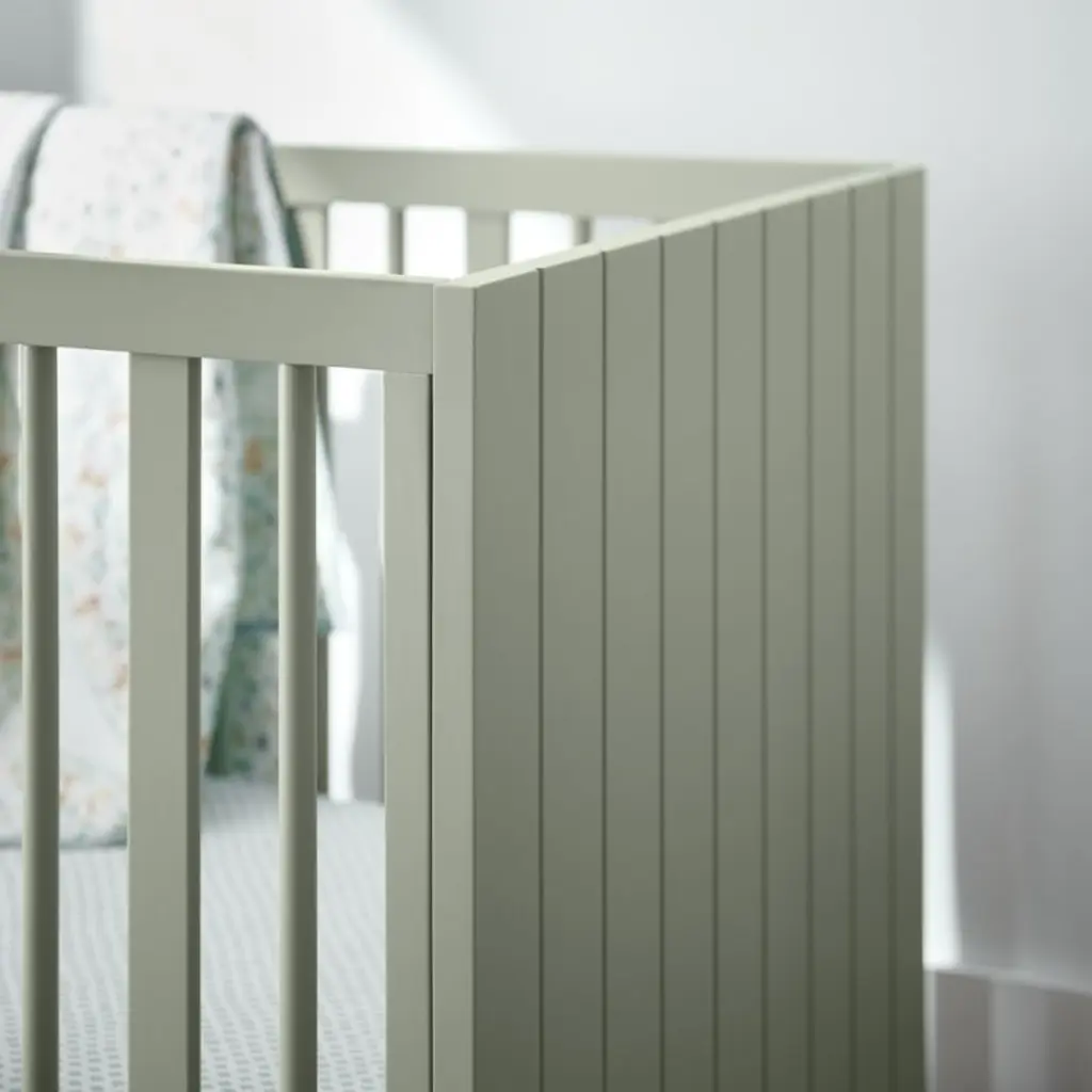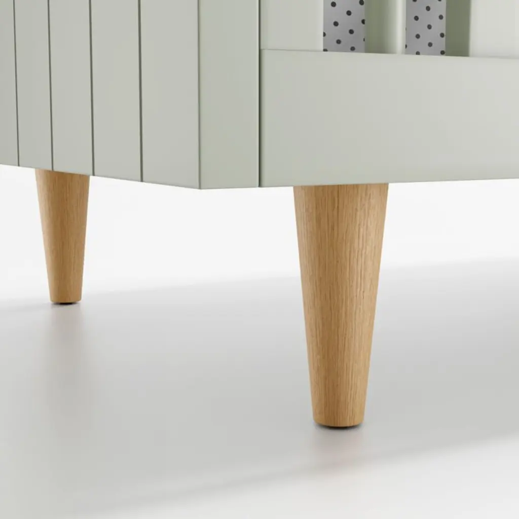What You'll Love • Scandinavian-inspired design and modern paneling• Gently tapered solid oak legs and a soothing two-tone style• It's easy to go from crib to toddler bed (rail sold separately)• GREENGUARD Gold Certified for healthier air in your homeClean lines, elevated paneling and an on-trend (and gender-neutral) sage hue: Count us in! Largely inspired by Scandinavian farmhouse design, our Finn kid's furniture collection blends rustic charm and modern minimalism without skipping a beat. With gently tapered oak legs in a natural finish, the crib's soothing two-tone palette translates perfectly in a nursery, while the solid wood rails and spindles lend stability and timeless style that can be passed down through the years.GREENGUARD Gold Certification
