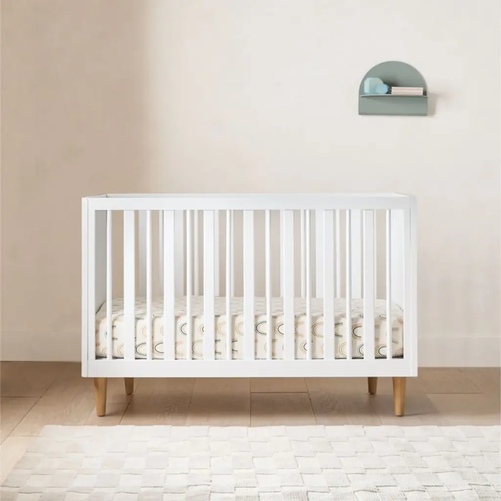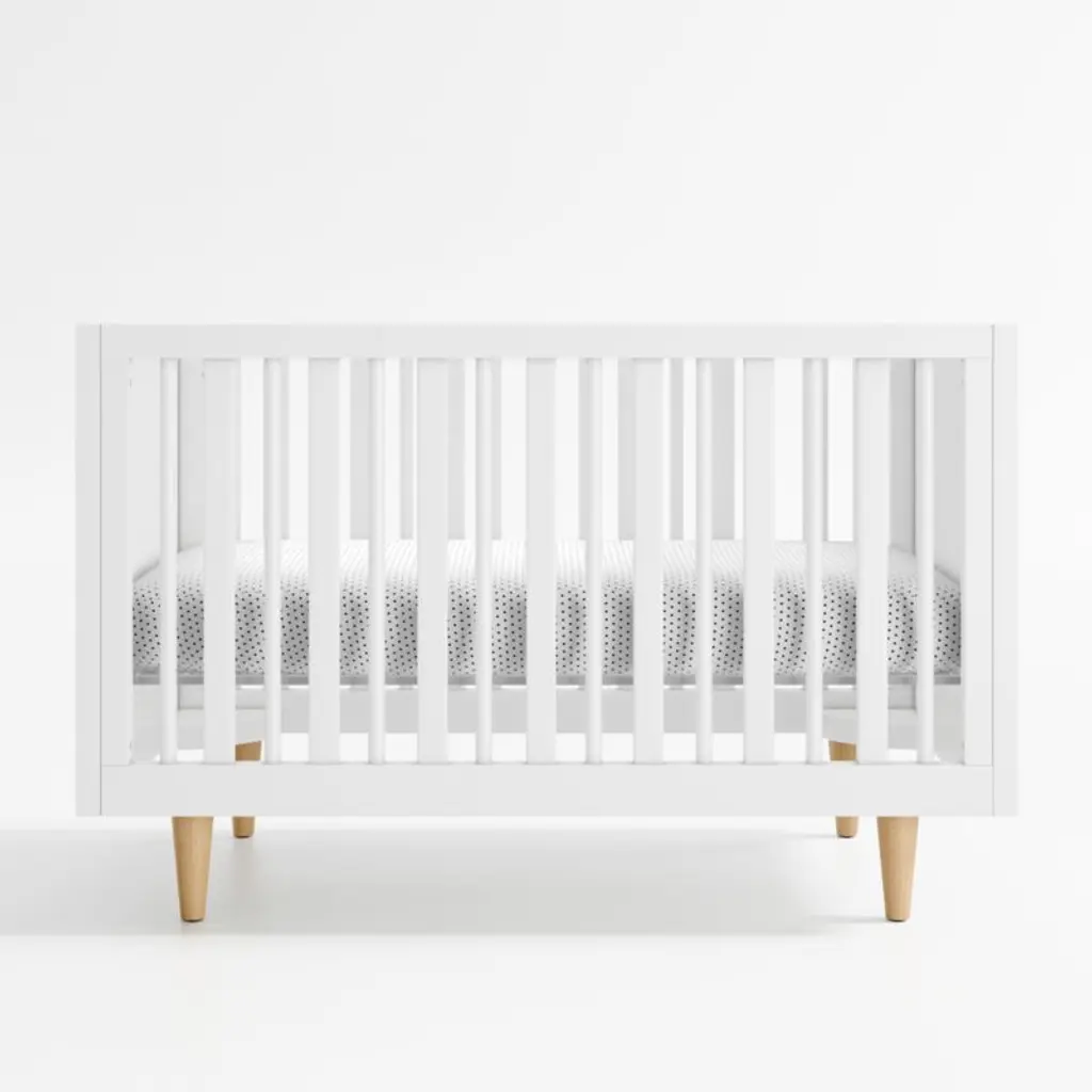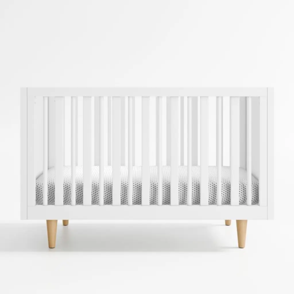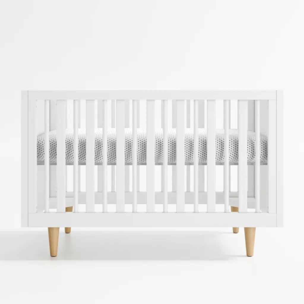 What You'll Love • Scandinavian-inspired design and modern paneling• Gently tapered solid oak legs and a soothing two-tone style• It's easy to go from crib to toddler bed (rail sold separately)• GREENGUARD Gold Certified for healthier air in your homeClean lines, elevated paneling and a classic (and gender-neutral) white finish: We're here for it. Largely inspired by Scandinavian farmhouse design, our Finn kid's furniture collection blends rustic charm and modern minimalism without skipping a beat. With gently tapered oak legs in a natural finish, the crib's tonal simplicity translates perfectly in a nursery, while the solid wood rails and spindles lend stability and timeless style that can be passed down through the years.GREENGUARD Gold Certification