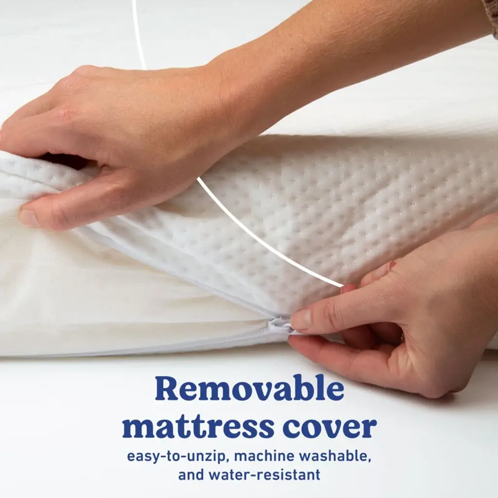 Dream in comfort. This standard crib and toddler bed mattress features a memory foam construction for optimal support and comfort. With a breathable and water-resistant design, it keeps your little one cozy while also being GreenGuard Gold Certified. The removable cover adds convenience for easy cleaning. Sleep tight!
