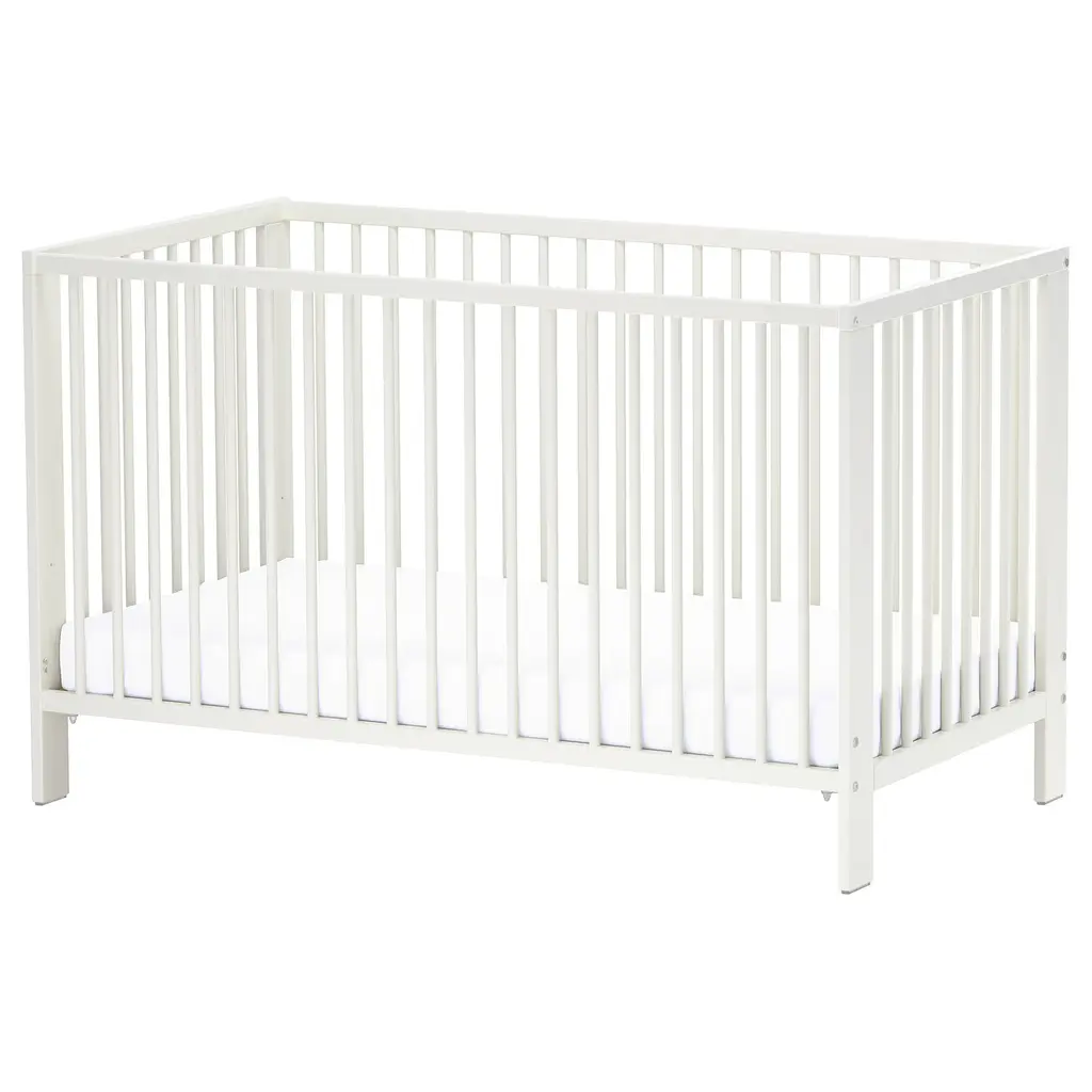 GULLIVER Crib - white 27 1/2x52 ". The bed base can be placed at two different heights. One crib side can be removed when the child is big enough to climb into/out of the crib. The crib base is well ventilated for good air circulation which gives your child a pleasant sleeping climate.