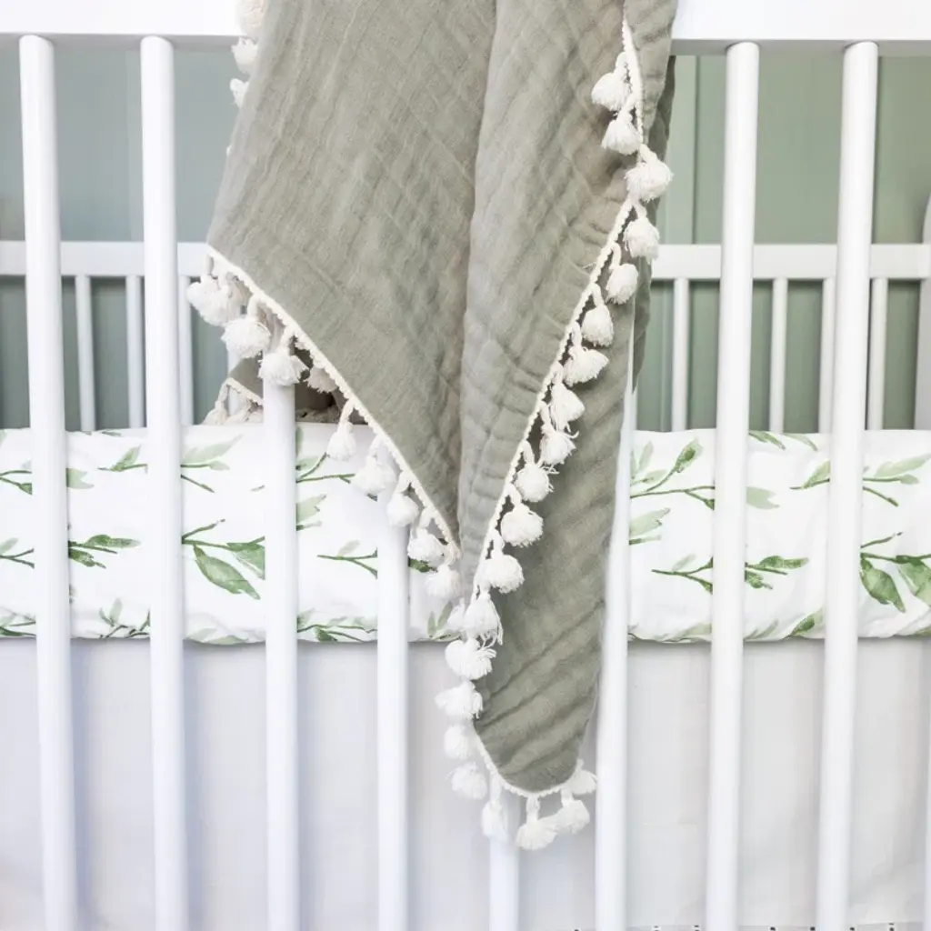 Transform your baby's dreams into a whimsical adventure with our Parker Leaf Fitted Crib Sheet. Part of the Parker Collection, this crib sheet features delicate watercolor leaf patterns in earthy green tones. Crafted from soft and breathable fabric, it provides the utmost comfort for your little one, ensuring they sleep soundly in their nursery wonderland.