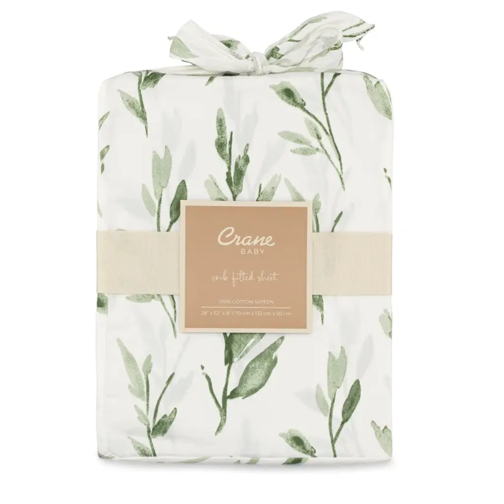 Leafy Floral 100% Cotton Crib Sheet, Soft And Durable, Crane Baby