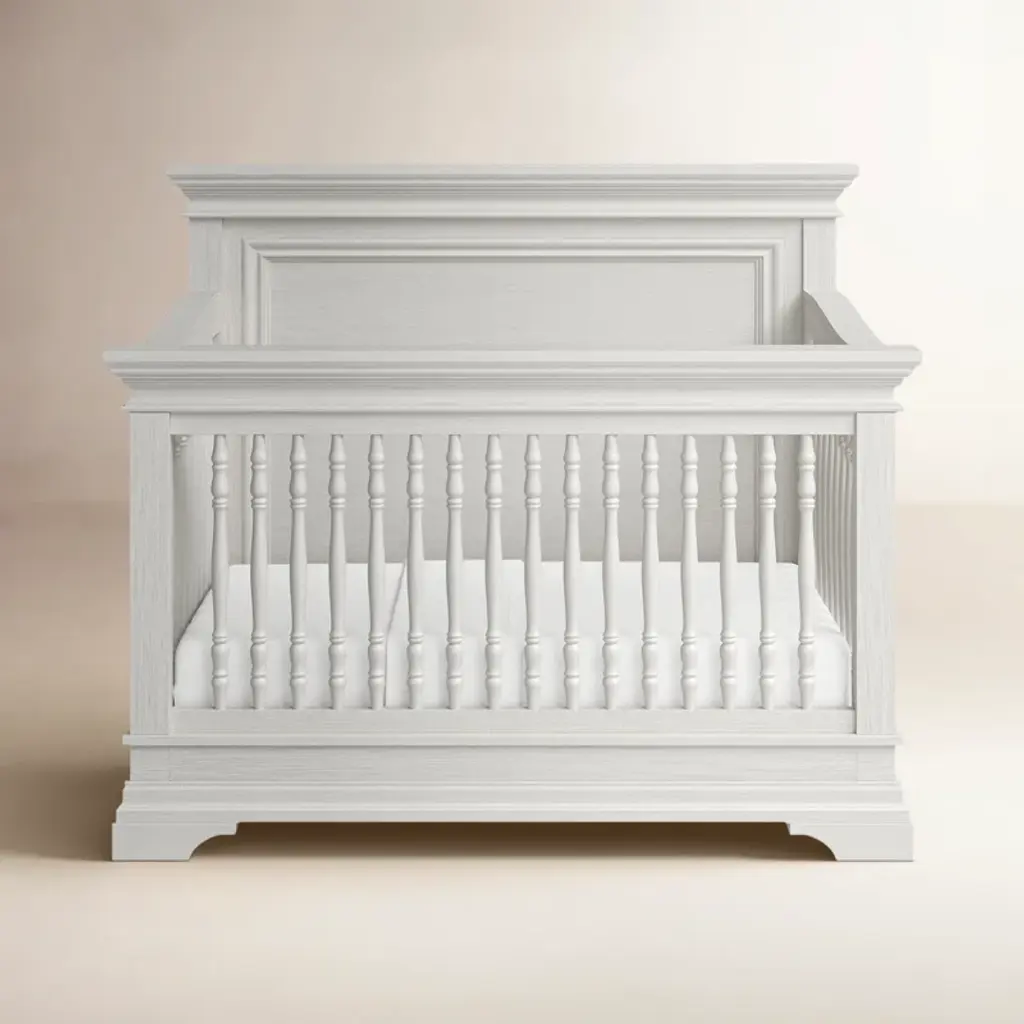 The Liberty 4-in-1 Convertible Spindle Crib from Namesake reimagines classic nursery style with a sturdy frame and bold, thicker spindles. Its timeless design adds vintage charm while offering versatile functionality that grows with your child. This elegant crib is the perfect centerpiece to create a warm, inviting space for your little one. Highlights