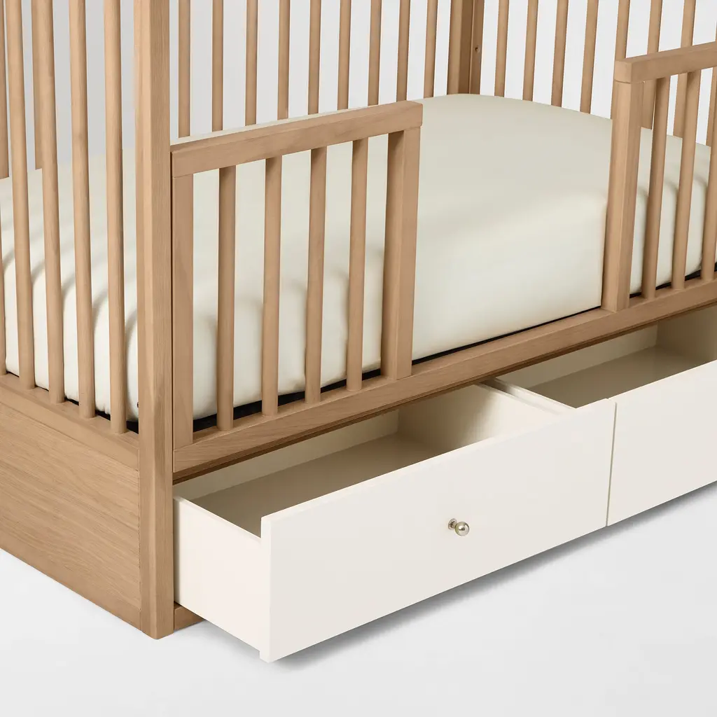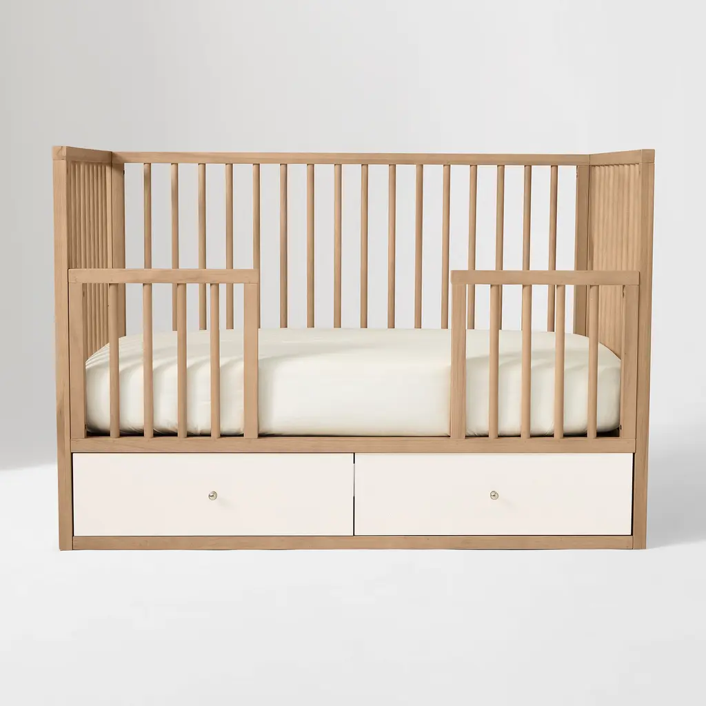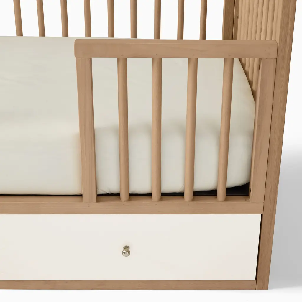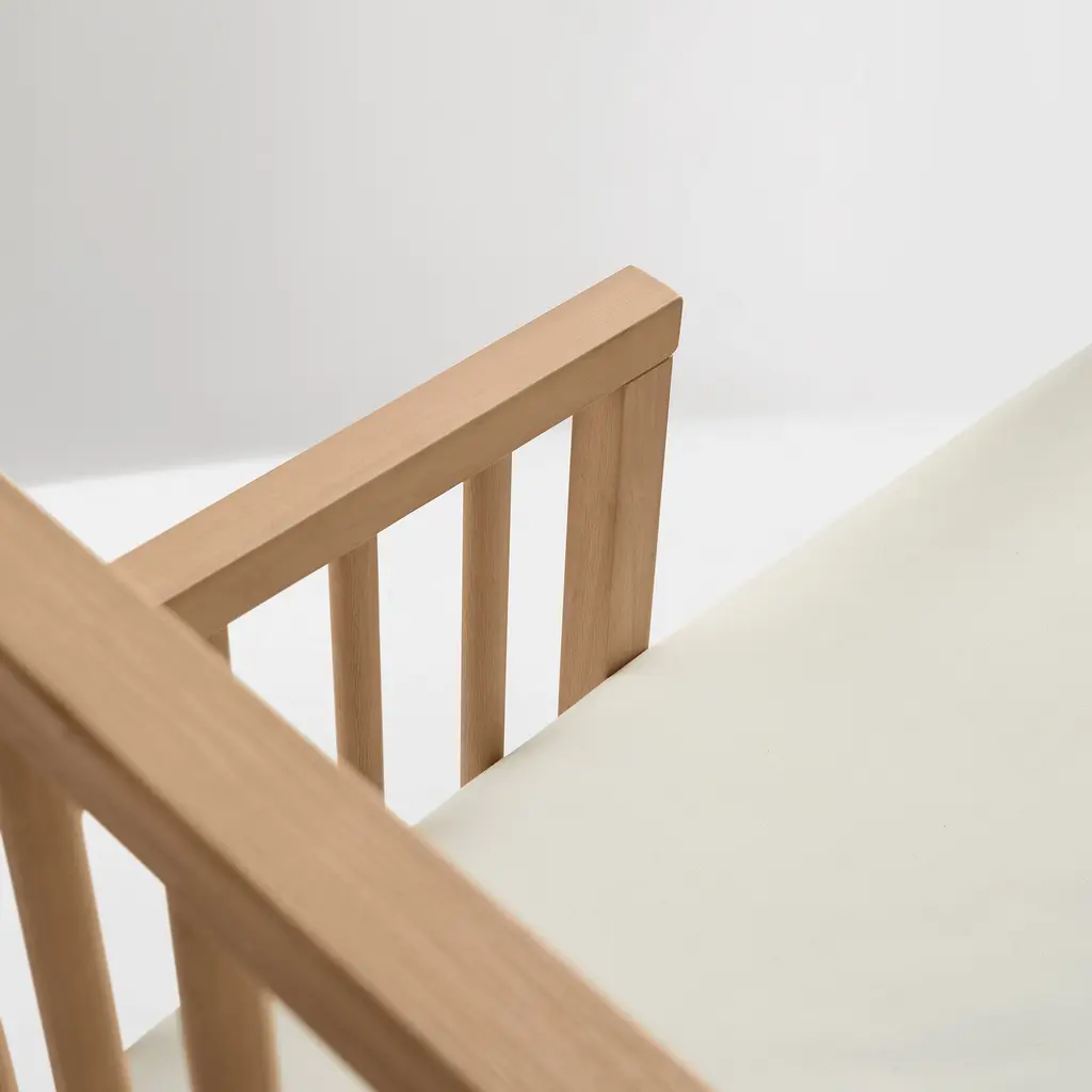 The modern appeal of its form, mixed materials and two-tone finish. Covered in a child-safe, water-based finish. Made in a Fair Trade Certified™ facility. Crafted from FSC®-certified wood.