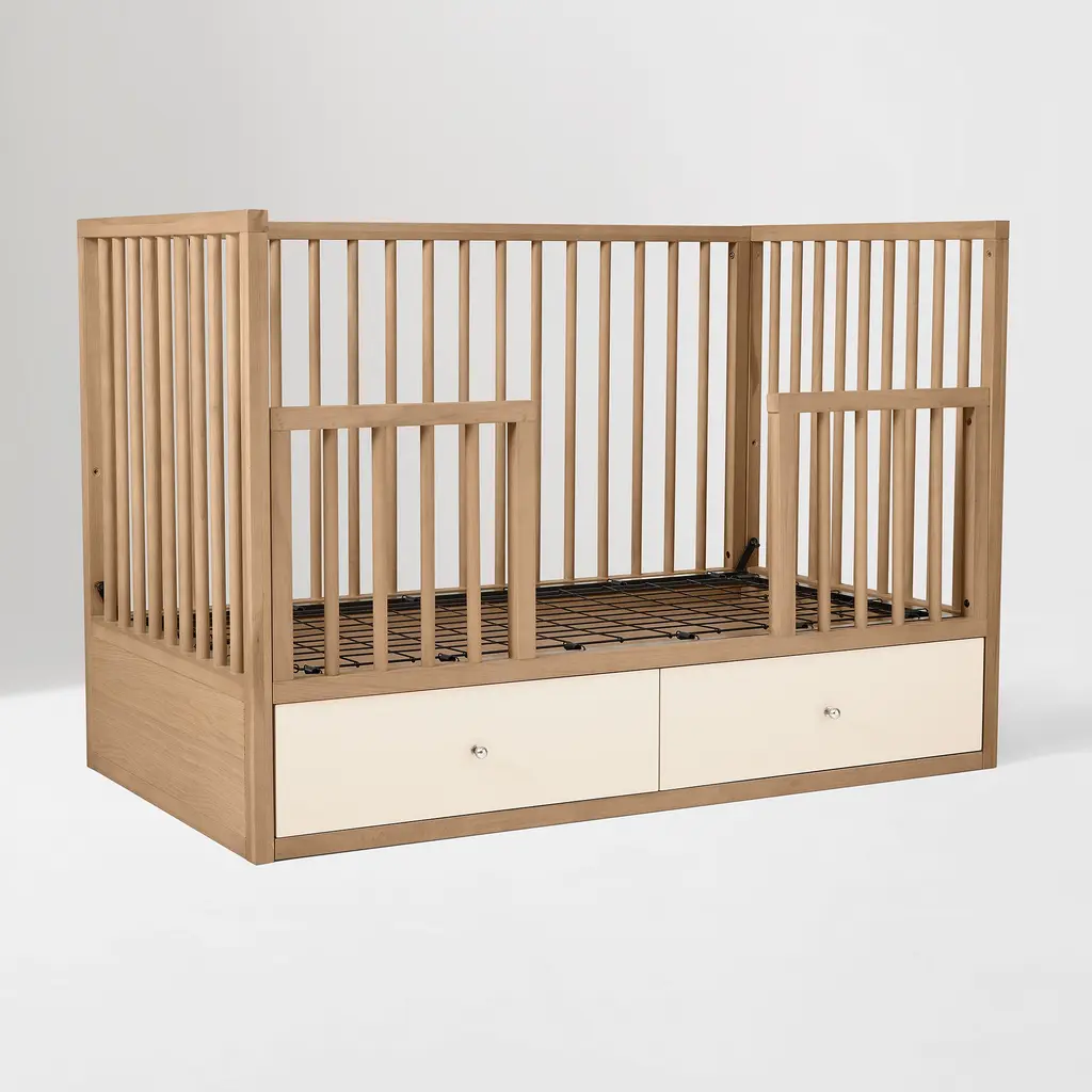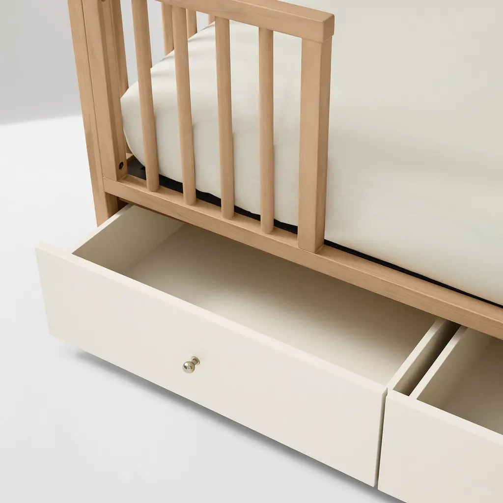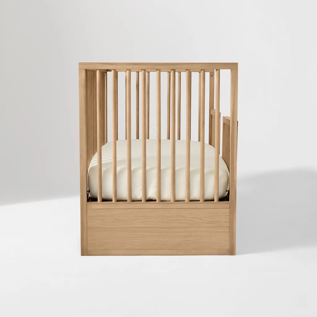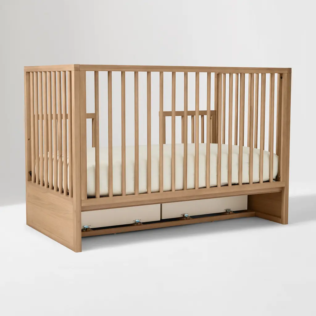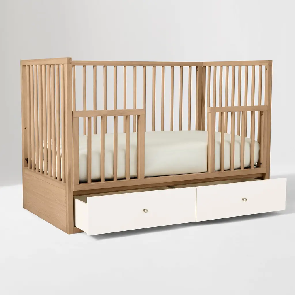 The modern appeal of its form, mixed materials and two-tone finish. Covered in a child-safe, water-based finish. Made in a Fair Trade Certified™ facility. Crafted from FSC®-certified wood.
