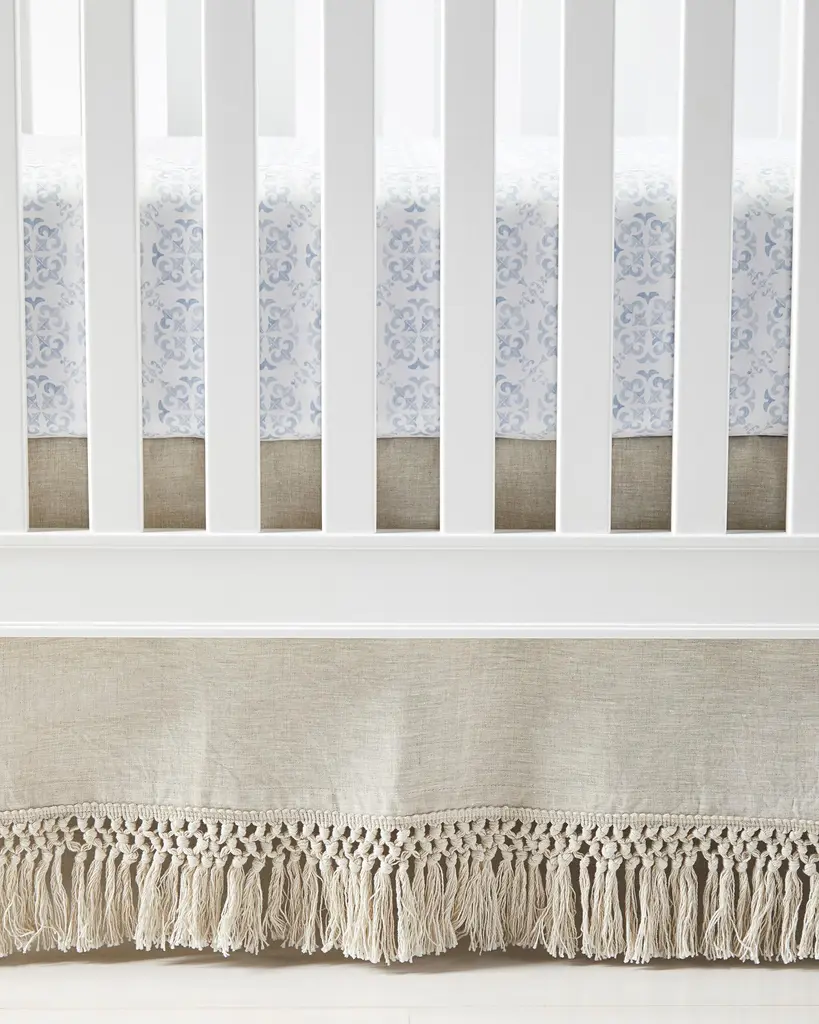 We can’t resist a fabulous fringe, and we adore the way this elevates the nursery in a way that doesn’t overpower. It adds a nice bit of texture, making it a great little embellishment that keeps things interesting.