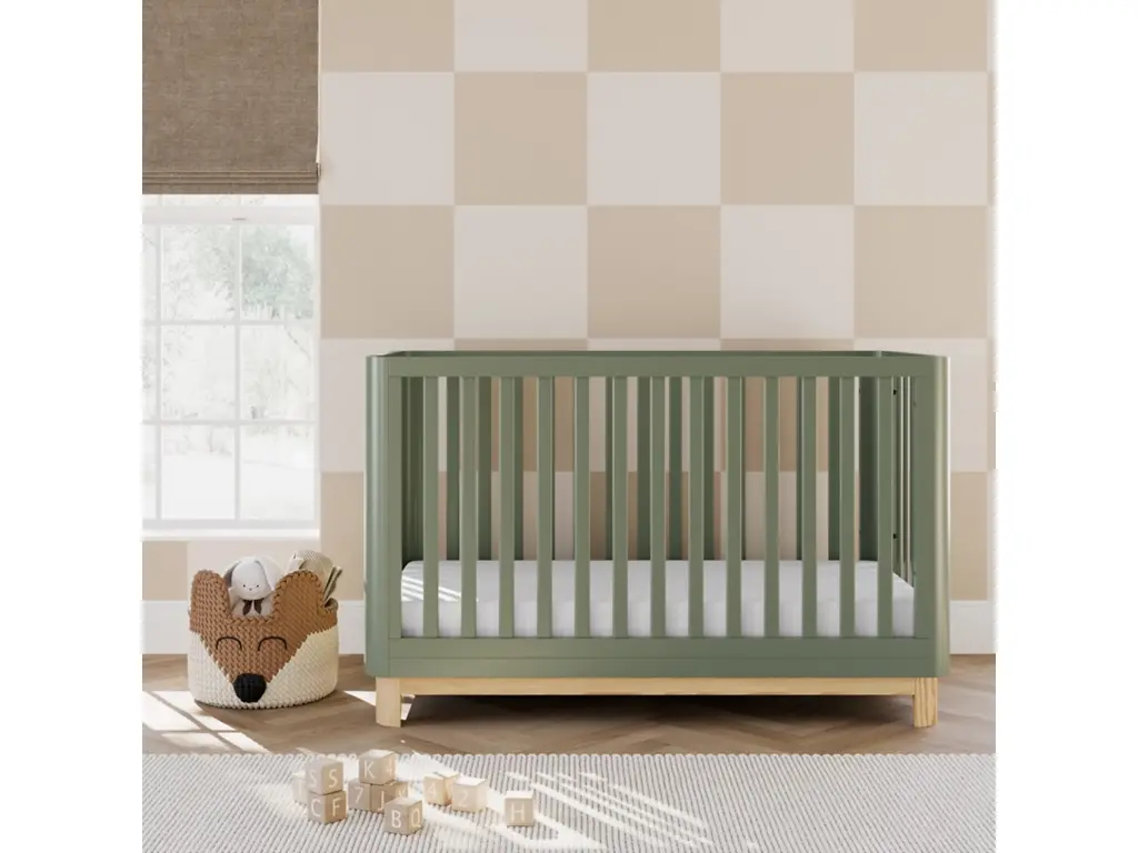 The perfectly stylish sleeping solution for the modern nursery, the Maki Crib from Babyletto offers a structured silhouette and adaptable frame to elevate your little one's room. Showcasing clean, modern geometric lines and a foldable frame, this crib is both portable and easy to store. Designed for effortless movement with removable wheels and lightweight timber construction, this crib is ideal for secondary living spaces or spending the night at the grandparent's. Modern and functional, an included toddler bed conversion kit allows you to seamlessly convert from crib to toddler bed to adapt to your little one's lifestyle as they grow. Features