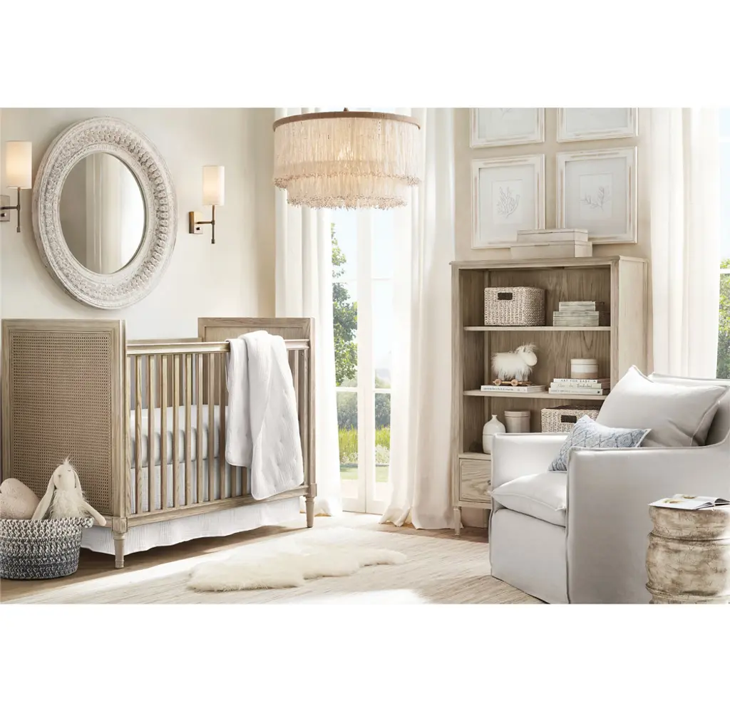 Marcelle's linear design and rectangular shapes pay homage to the simplicity and restraint of late 18th-century furnishings. Expertly crafted of solid hardwood, the crib is finished with light and airy cane panels. GREENGUARD Gold Certified. Meets or exceeds stringent chemical emissions standards. Learn more. SHOP THE ENTIRE COLLECTION