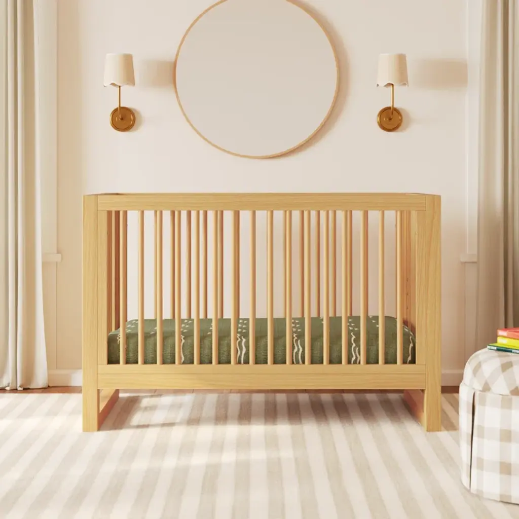 Crisp and minimalistic, the Nantucket 3-in-1 Convertible Crib is a modern take on the classic coastal design, with its clean lines and natural wood grains. Featuring neutral-hued wooden frames, balanced by rounded slats, the Nantucket is a transitional piece that will grow with your family.