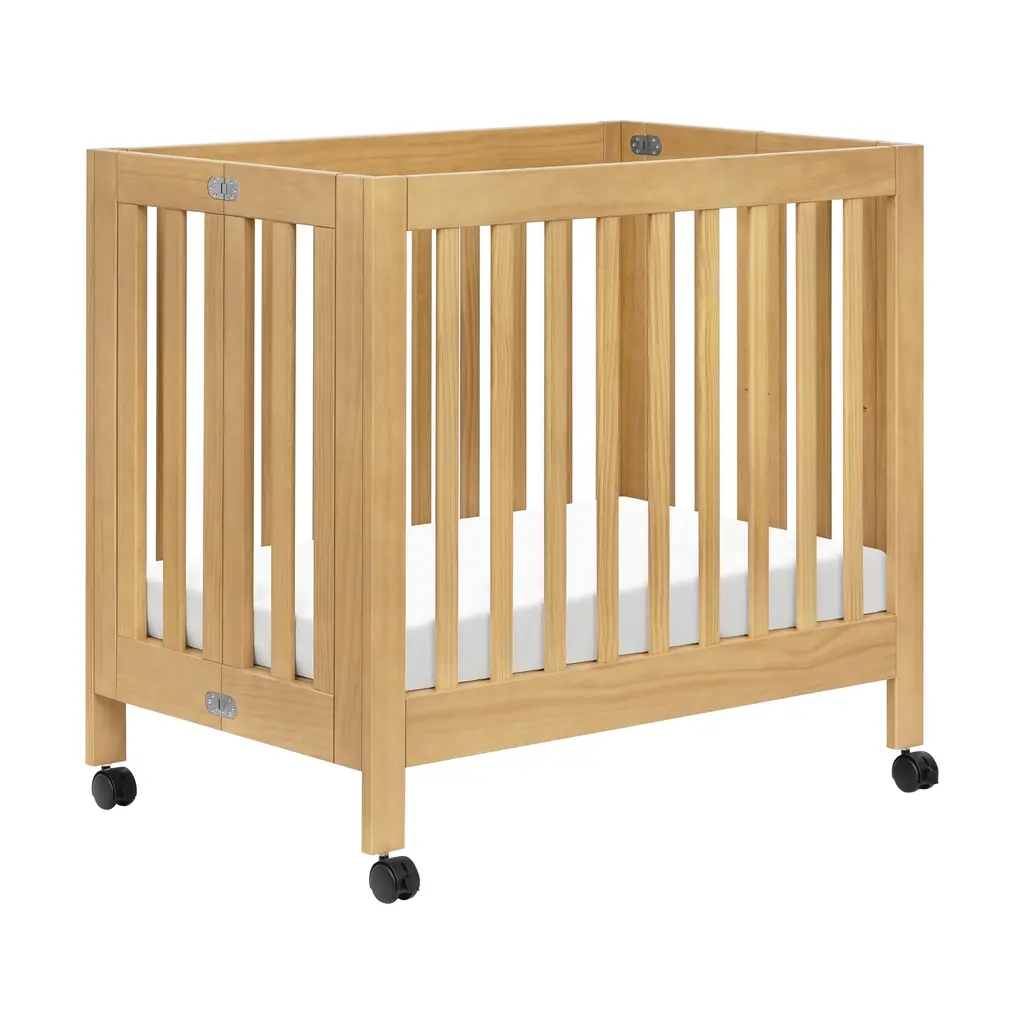A stylish, portable mini crib designed for the modern family on the go, the Origami Mini Crib from Nursery Works is a convenient sleep solution for your little one. Perfect for urban living or a secondary living space, the Origami Mini's streamlined footprint and rolling feet allow for easy movement throughout the home, and will outlast a bassinet, providing a safe sleeping environment for your little one. Outfitted with a folding mechanism for effortless storage, this mini crib is crafted from sustainably-sourced wood for a durable and lightweight design. Available in a variety of finishes to suit your nursery or bedroom, this crib is Greenguard Gold Certified for your baby's safety and your peace of mind. Highlights