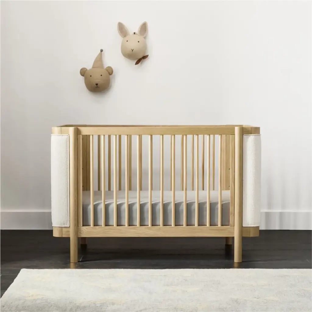 Redondo Upholstered Wood Baby Crib With Toddler Bed Rail
