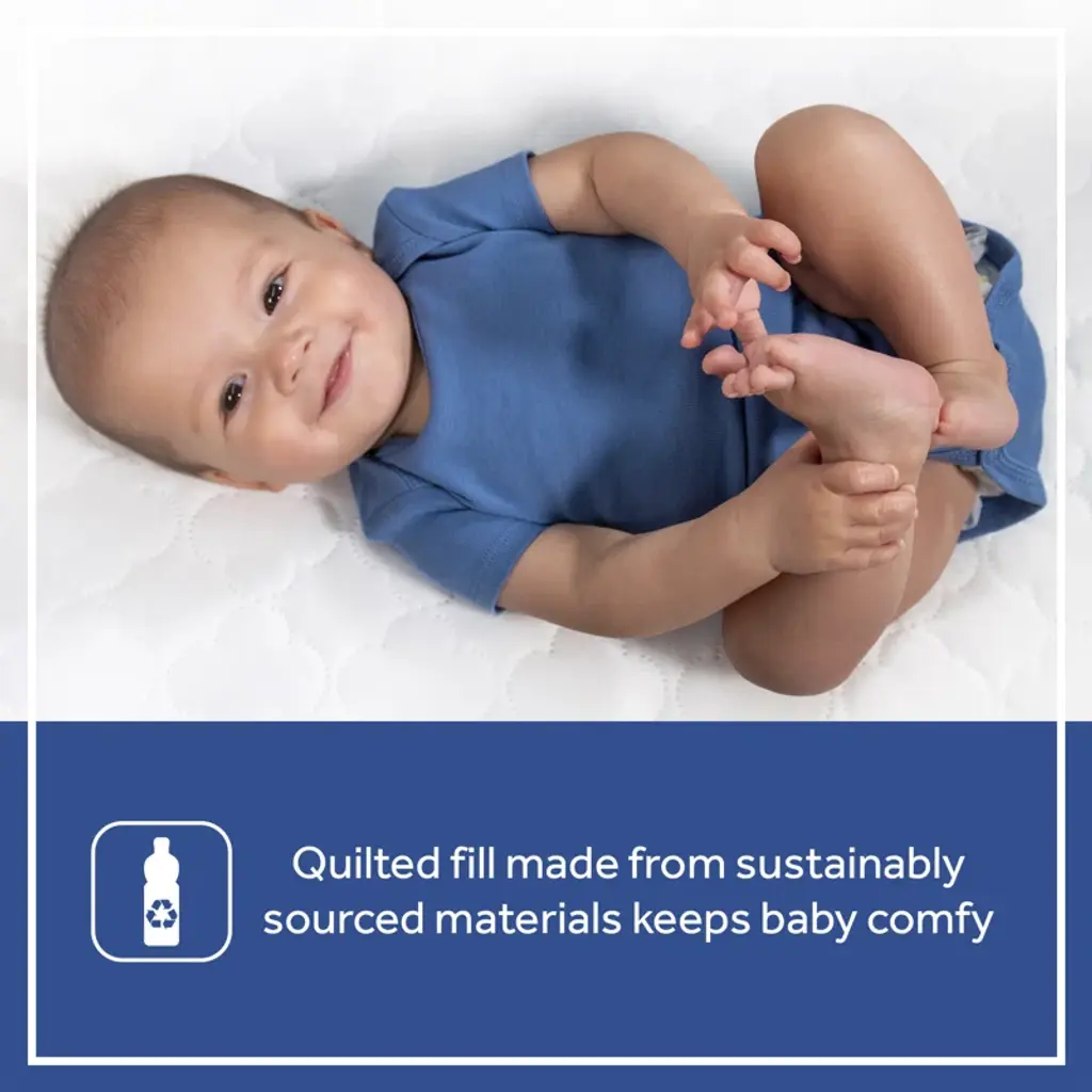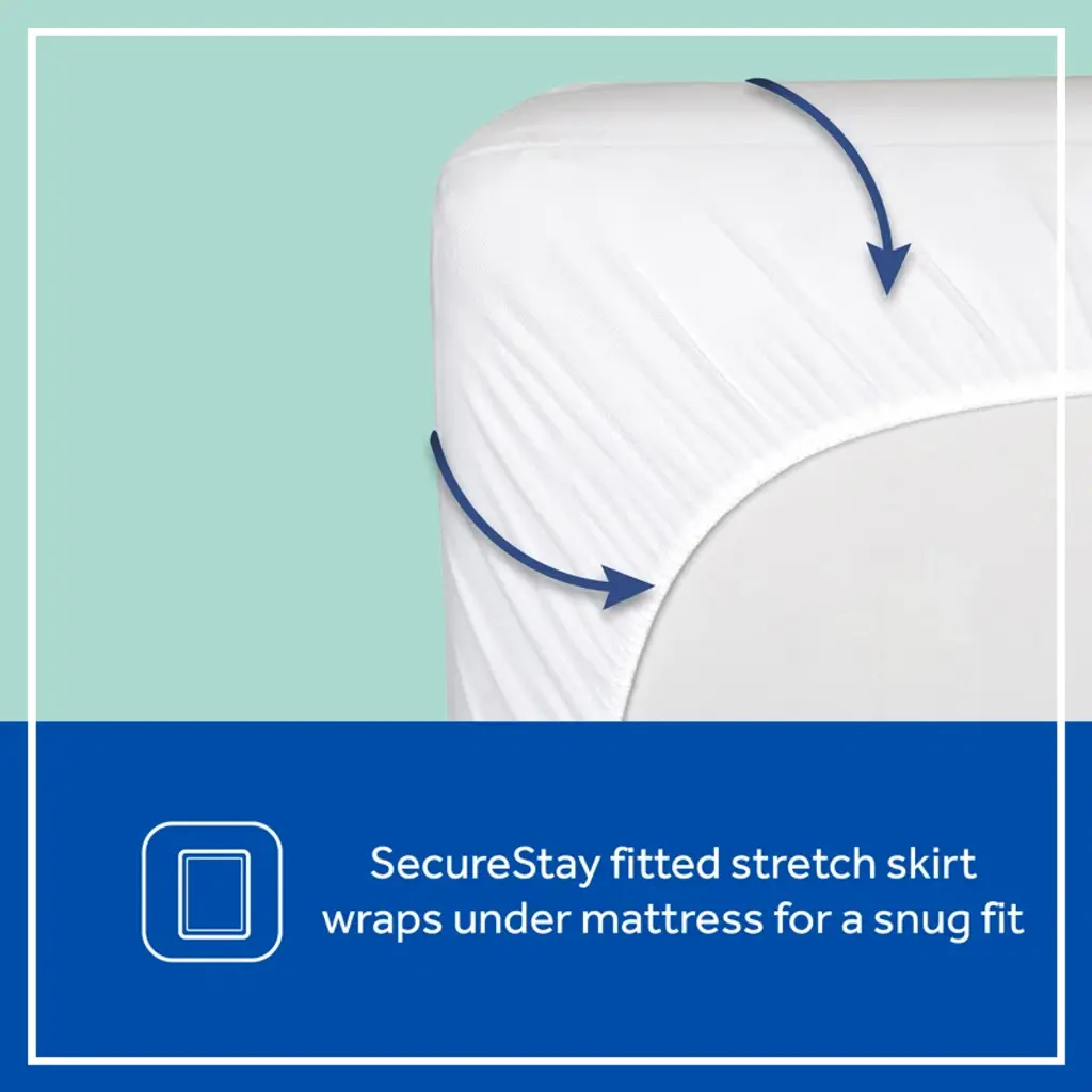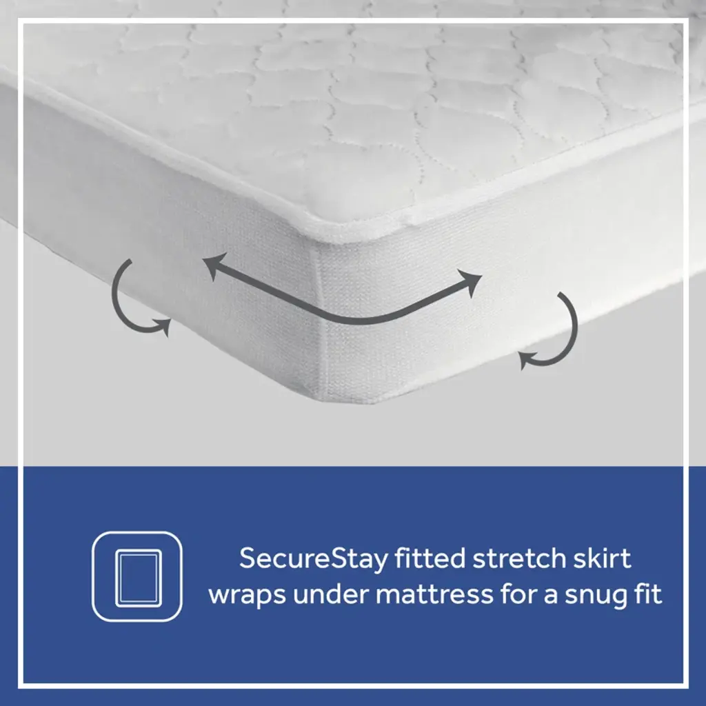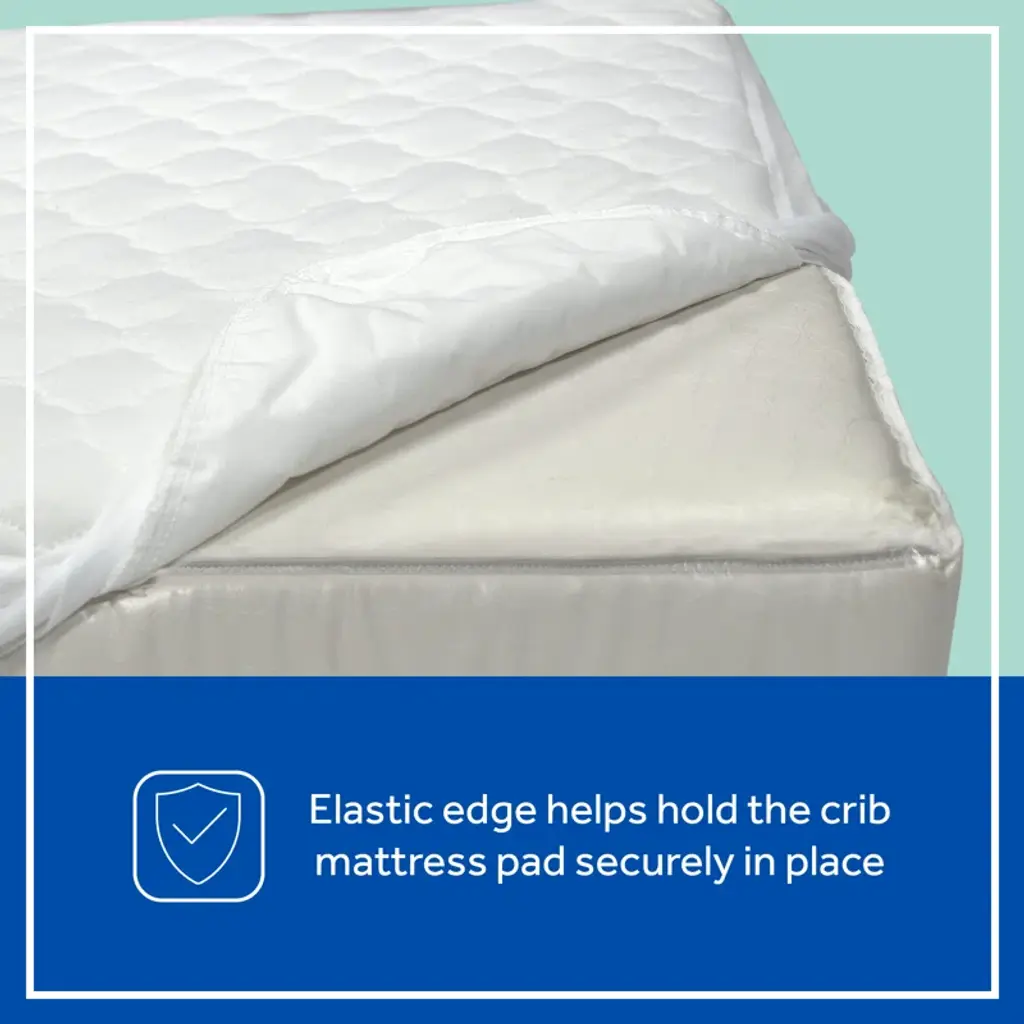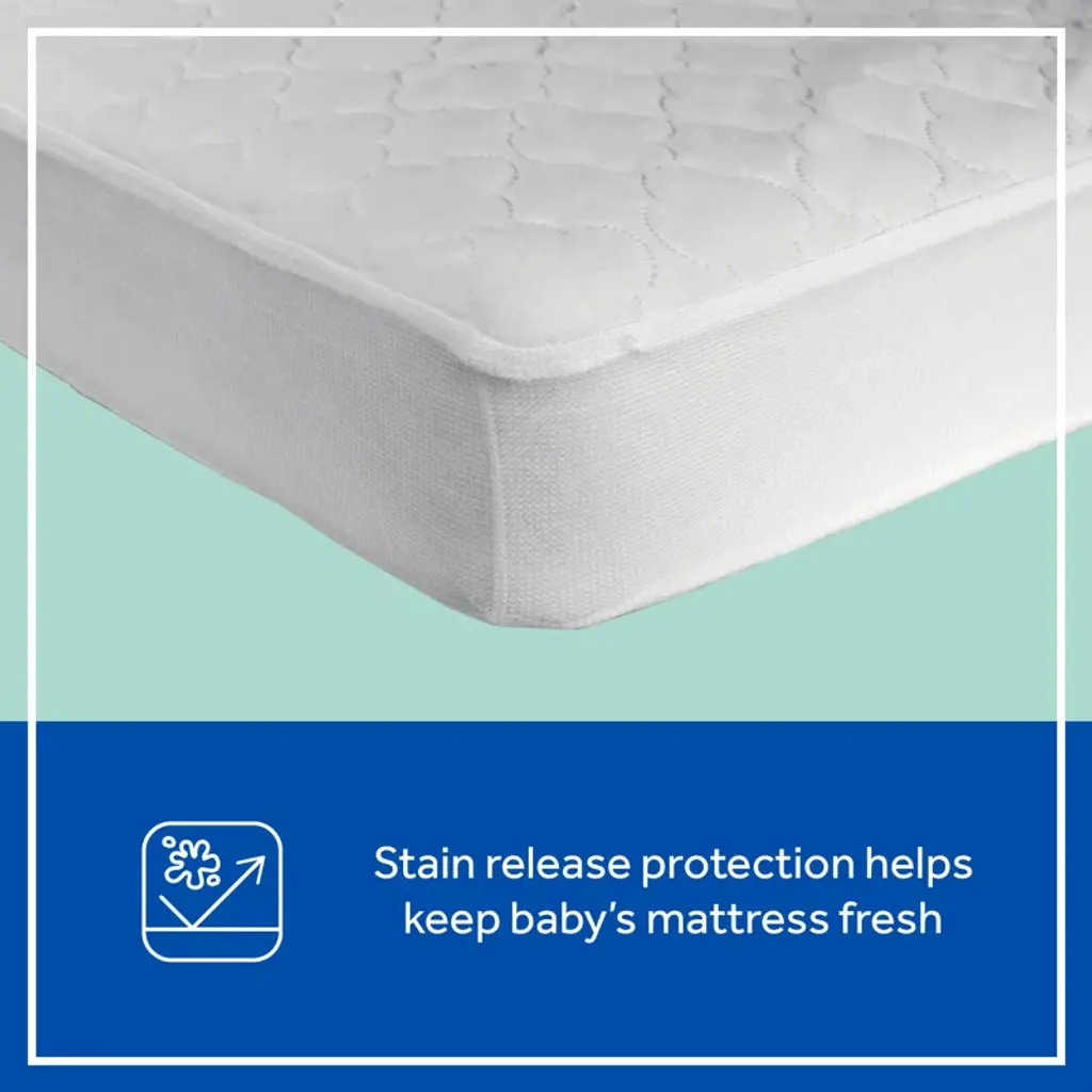 Keep your baby’s crib mattress clean and comfortable with the Sealy Stain Protection Crib Mattress Pad. Designed for full-size USA standard crib and toddler mattresses, this mattress pad measures 52" x 28" to provide a perfect fit. The quilted 100% polyester top adds an extra layer of softness and coziness, ensuring your little one rests comfortably throughout the night. The SecureStay full-fitted stretch skirt prevents slipping and shifting, offering enhanced security and a snug, reliable fit. An elastic edge keeps the mattress pad firmly in place, eliminating bunching or sliding during use. This crib mattress pad features durable stain protection to help maintain a fresh, clean sleeping environment for your baby. It’s easy to care for—simply machine wash warm on a gentle cycle and tumble dry on low heat. The breathable polyester fabric promotes airflow, supporting a safe and healthy sleeping surface. Ideal for new parents, we recommend having 2 to 4 crib mattress pads to ensure you always have a fresh, dry pad available while others are in the wash. This versatile crib mattress protector is compatible with standard crib mattresses, toddler beds, and portable cribs, making it a practical and essential addition to your nursery essentials. Choose the Sealy Stain Protection Crib Mattress Pad for a dependable, comfortable, and easy-to-maintain solution that helps protect your baby’s mattress from spills, stains, and wear. This pad enhances mattress longevity and provides peace of mind for busy parents. Upgrade your nursery today with this high-quality crib mattress pad designed for safety, comfort, and convenience.