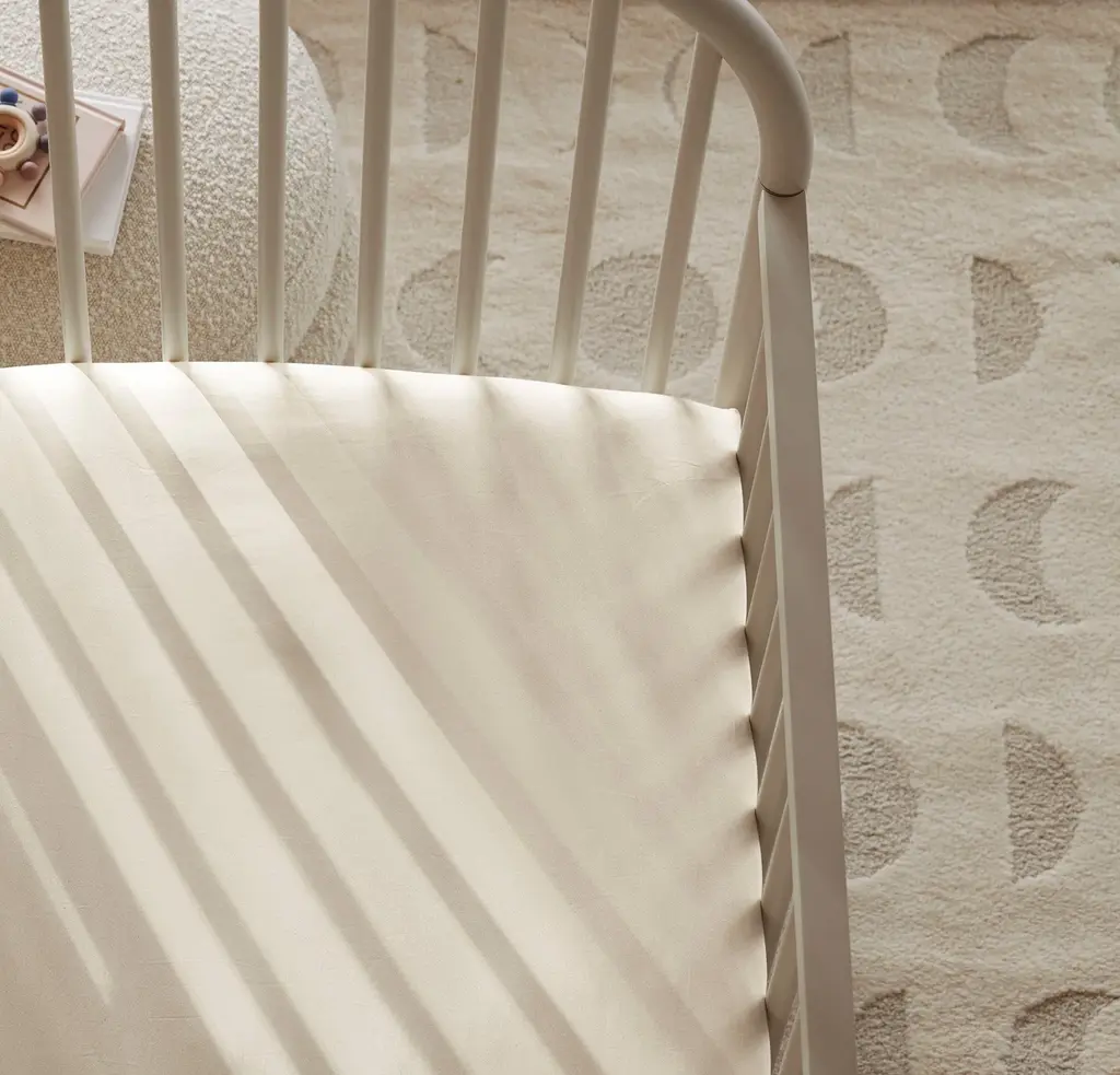 Made free from toxins at every step, so both you and baby can sleep better at night: this fitted crib sheet is buttery, breathable, and gets softer with every wash. We source the finest long-staple 100% organic cotton on earth, and luxuriously weave each thread with meticulous precision for gentle softness. Parents will love the easy care of this machine-washable layer, and the reinforced elastic banding around the entire fitted sheet for a more secure fit. The Feel Buttery, breathable, softer with every wash The Look Fits soft and snug around the mattress