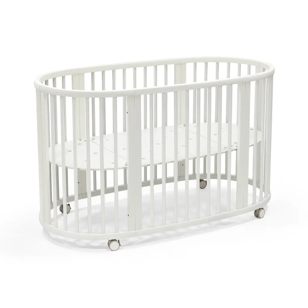 The Stokke Sleepi Crib/Bed V3 soft oval design cocoons your baby offering comfort and familiarity for restful sleep and the sweetest of dreams. This Crib/Bed can be used from birth to 5 years so your child can enjoy their bed throughout childhood. Adjust the height position of the mattress as your child gets bigger and reaches the curious climbing stage. Once your child is old enough to get in and out of the bed on their own, you can remove the wheels and one side of the bed for easy access. This will boost your child’s independence as well. Maximum air circulation for comfortable sleep. Add the optional mattress for the perfect fit to provide your little one with a stylish spot to sleep and grow. Compatible With Features
