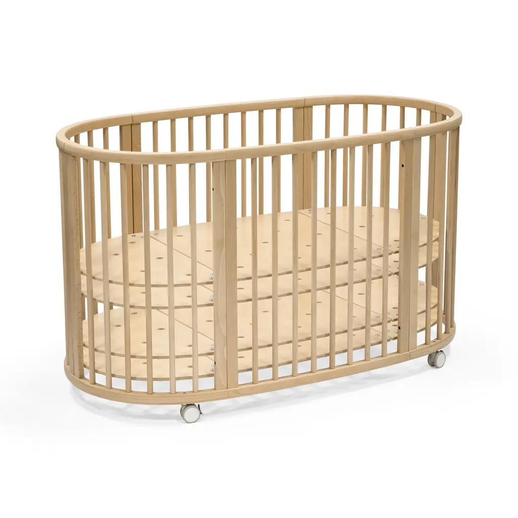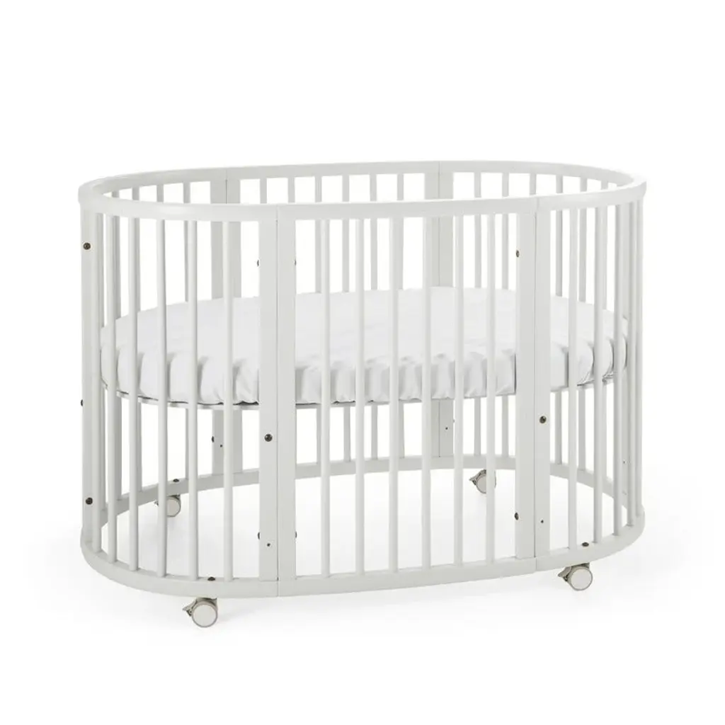 The Stokke Sleepi Crib/Bed V3 soft oval design cocoons your baby offering comfort and familiarity for restful sleep and the sweetest of dreams. This Crib/Bed can be used from birth to 5 years so your child can enjoy their bed throughout childhood. Adjust the height position of the mattress as your child gets bigger and reaches the curious climbing stage. Once your child is old enough to get in and out of the bed on their own, you can remove the wheels and one side of the bed for easy access. This will boost your child’s independence as well. Maximum air circulation for comfortable sleep. Add the optional mattress for the perfect fit to provide your little one with a stylish spot to sleep and grow. Compatible With Features