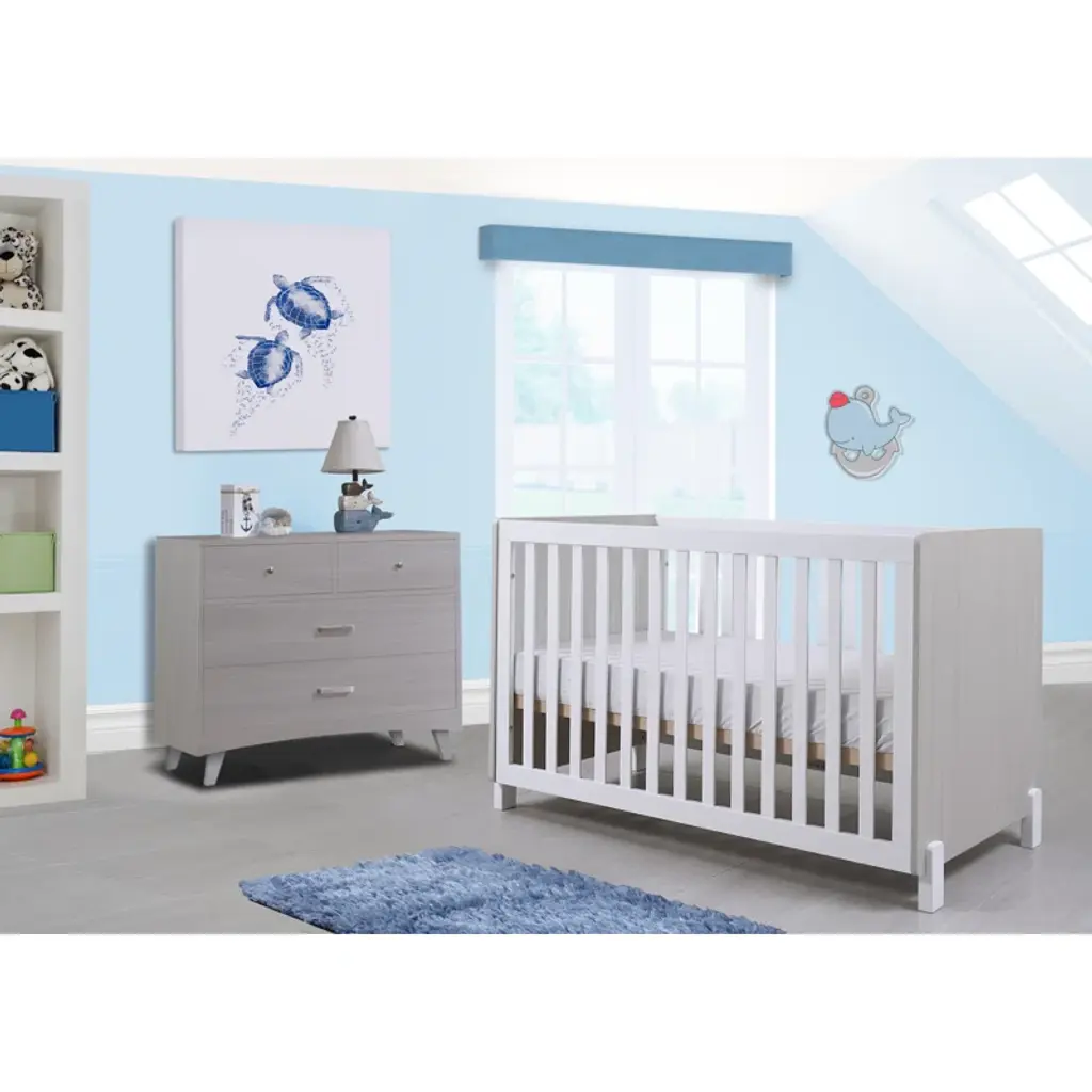 Our Sorelle Furniture Pannello Crib offers a modern take on a classic style. The Italian-crafted crib is made from sustainable European Beech wood with simple white or beige finishes and white or gray side panels which enhance the streamlined look. The paneled sides provide extra safety and balance with airy, open slats. Plus, the crib easily transitions from a crib into a toddler bed, which will grow with your baby and allow use for years to come.
