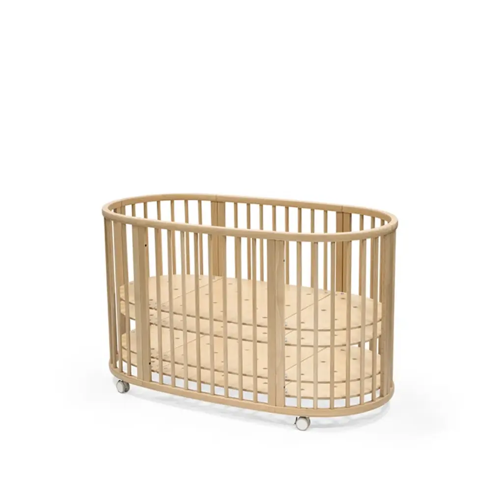 Your baby's crib is the heart of your nursery. It should be beautiful, functional, and above all, safe and soothing for your little one. Made of solid European beech wood, with adjustable height, Stokke® accommodates the changing needs of your growing child. Soft oval design cocoons your baby offering comfort and familiarity for restful sleep and the sweetest of dreams. Stokke® bed can be used from birth to 5 years so your child can enjoy their bed throughout childhood. Adjust the height position of the mattress as your child gets bigger and reaches the curious climbing stage. Once your child is old enough to get in and out of the bed on their own, you can remove the wheels and one side of the bed for easy access. This will boost your child's independence as well. The Stokke® concept has been developed with sound sleep and safety in mind. Accessorize with the breathable mesh liner and high-quality textiles. Stokke® is FSC-certified using responsibly sourced wood. FSC is a sustainable forest management solution. With this Stokke®, we help take care of the world's forests.