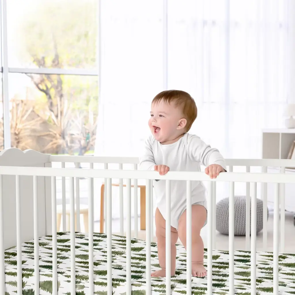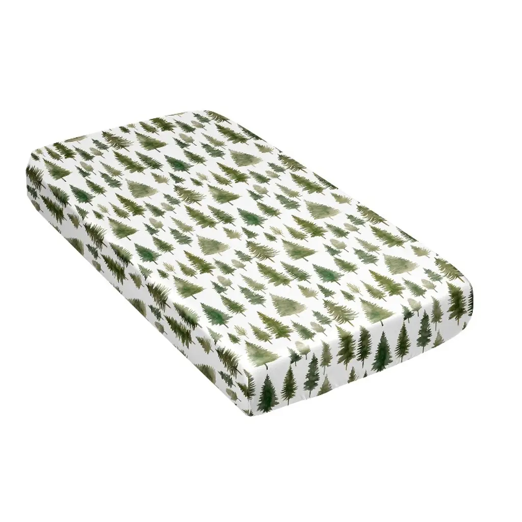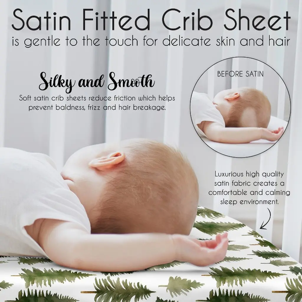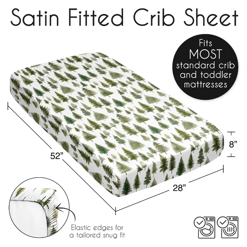 Sweet Jojo Designs Gender Neutral Unisex Satin Fitted Crib Sheet Woodland Pine Tree Green And White