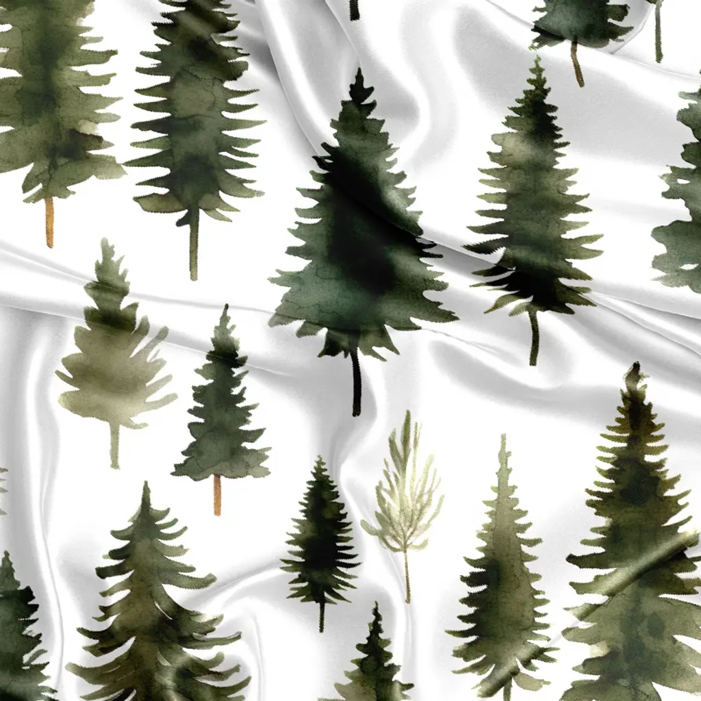Woodland Pine Tree Collection Sweet Jojo Designs satin fitted crib sheets combines the benefits of cozy soft fabrics with stylish designs to help create the ideal sleeping environment for your little one in their nursery and become your next newborn essential. Baby bad hair days are a thing of the past! Use a delicate satin crib sheet to help prevent cradle cap, baby hair loss and bald spots while also helping to reduce frizzy locks and knots. This silky smooth fabric is designed to absorb baby’s natural oils to help ensure fresh glowing skin and hair for your bundle of joy while also being gentle on sensitive skin. Each crib sheet is made with a fully elastic bottom for a more secure fit on most standard size cribs. Pair your crib baby satin sheet with your favorite Sweet Jojo Designs crib bedding sets, receiving security blankets, changing pad covers and other baby room decor accessories (These items not included). This satin crib fitted sheet features an exclusive design of a dark hunter sage green woodland forest themed nature pine tree abstract watercolor christmas trees camping wilderness outdoors woods print.