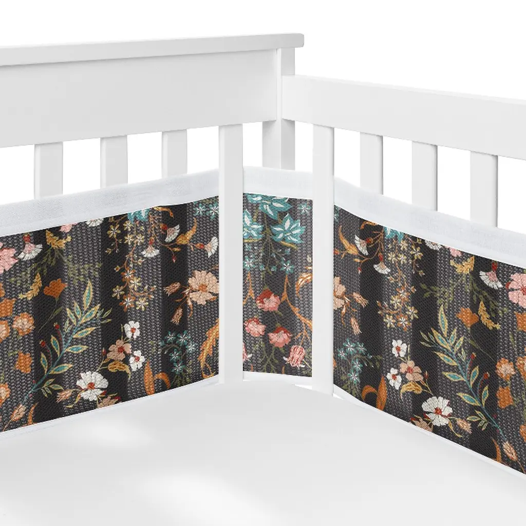 Sweet Jojo Designs Girl Crib Bedding + Breathablebaby Breathable Mesh Liner Baby Nursery Boho Floral Wildflower Orange Black And Blue