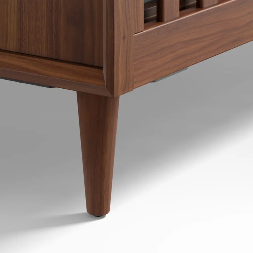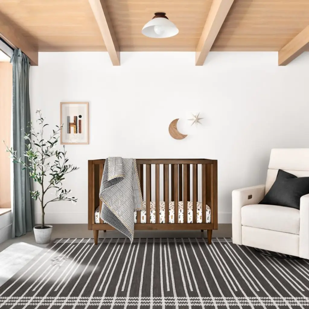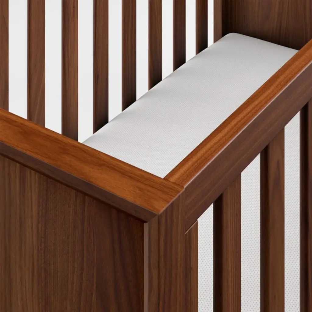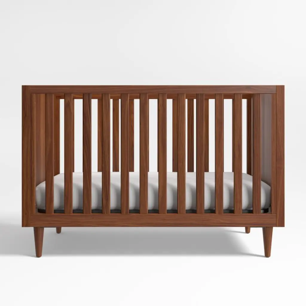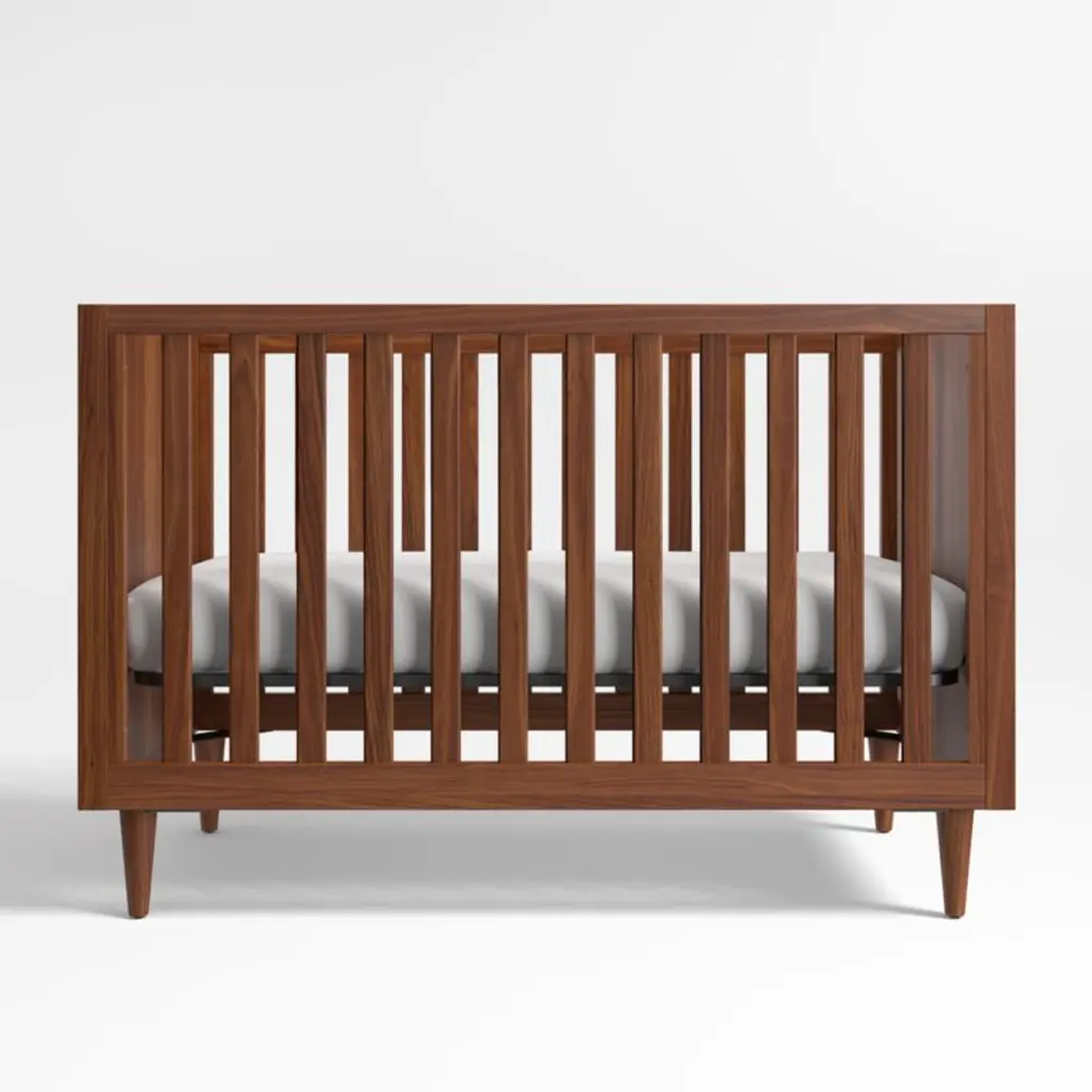 Meet Tatum. Crate & Kids' quintessential mid-century furniture collection for today's modern family. Tailored lines and tapered legs are expertly crafted in solid poplar and walnut veneer with a natural walnut finish to highlight the gorgeous grain pattern. Create a timeless nursery design with coordinating pieces from our Tatum Mid-Century Collection. Pairs with any of our Crib Mattresses.Learn how to choose a crib.