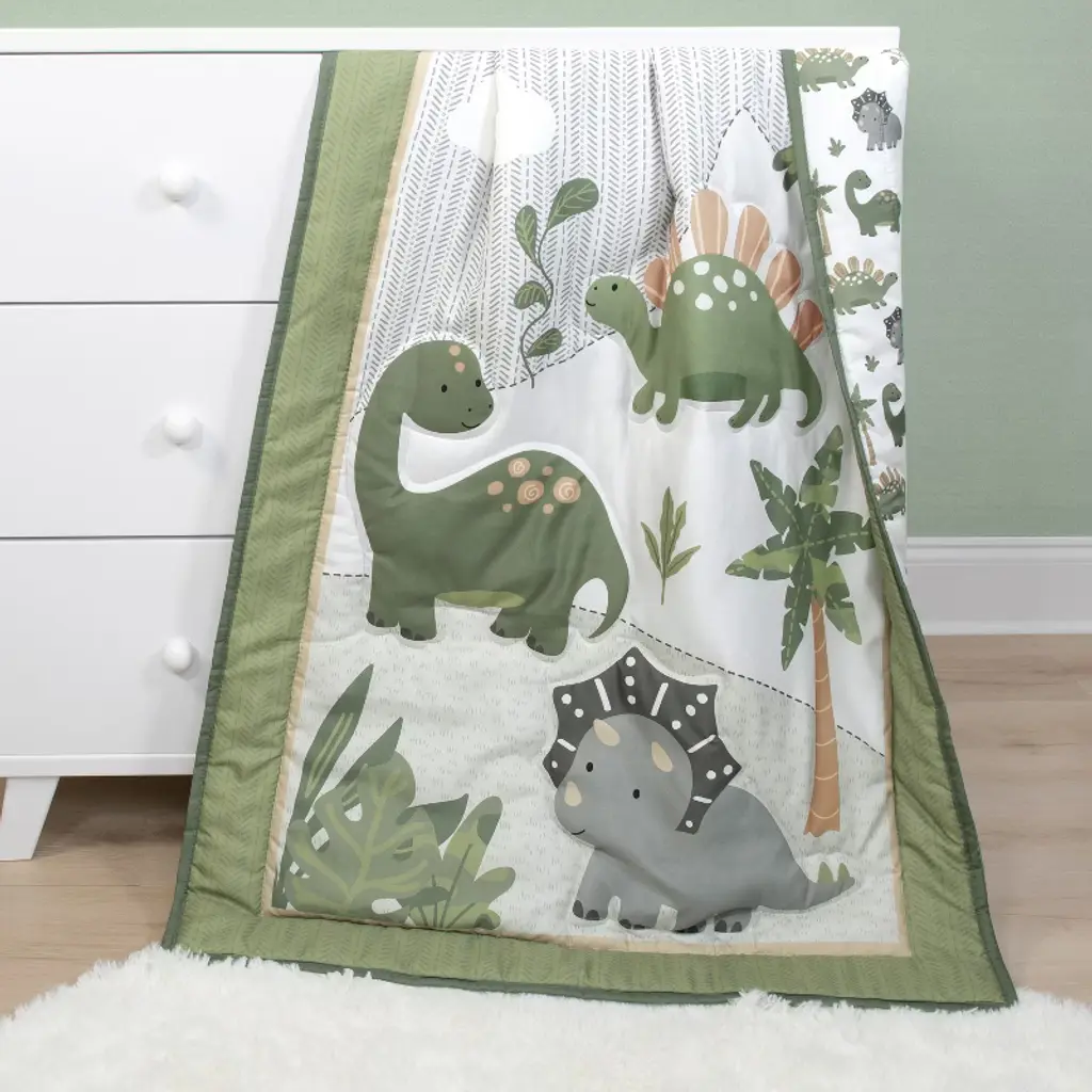The Peanutshell Baby Crib Bedding Set For Boys, Dinosaur Nursery Decor, Sage Green, Crib Comforter Set