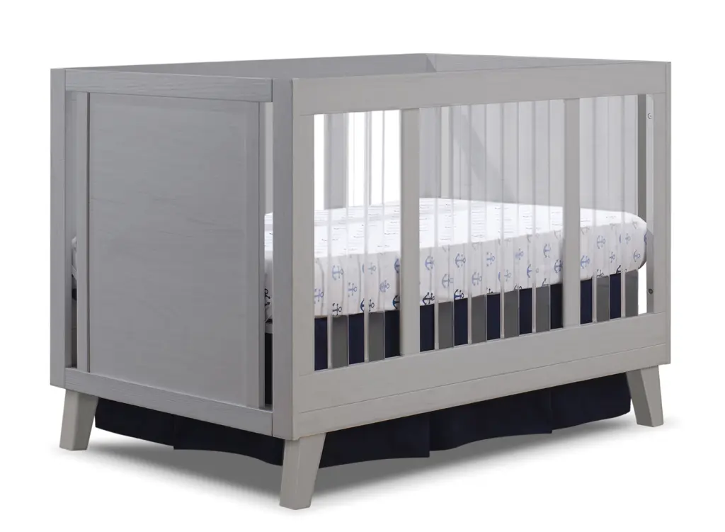 Uptown Acrylic Crib sports a mix of traditional and modern styles to compliment your baby's nursery. The white wooden frame, two solid wood panels and clear acrylic slats compliment each in both looks and functionality to keep you and your baby safe and sound. Please note, this crib does not convert.