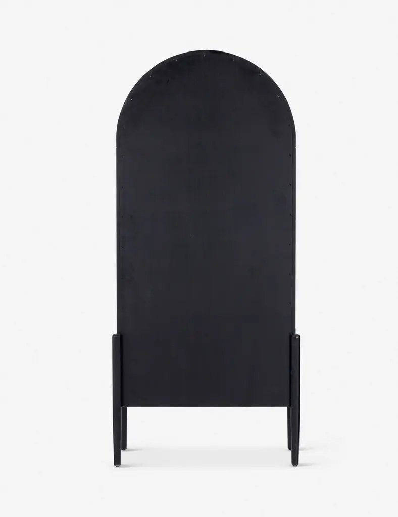 With its stately arched design, this curio cabinet is a showcase piece itself. Its beautifully-crafted solid oak cabinetry features four spacious interior shelves and a clear glass front, ready to display special-occasion dinnerware, favorite books, and treasures.