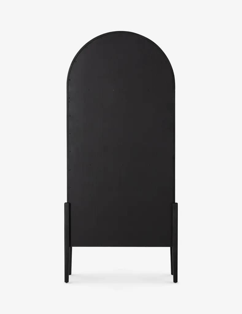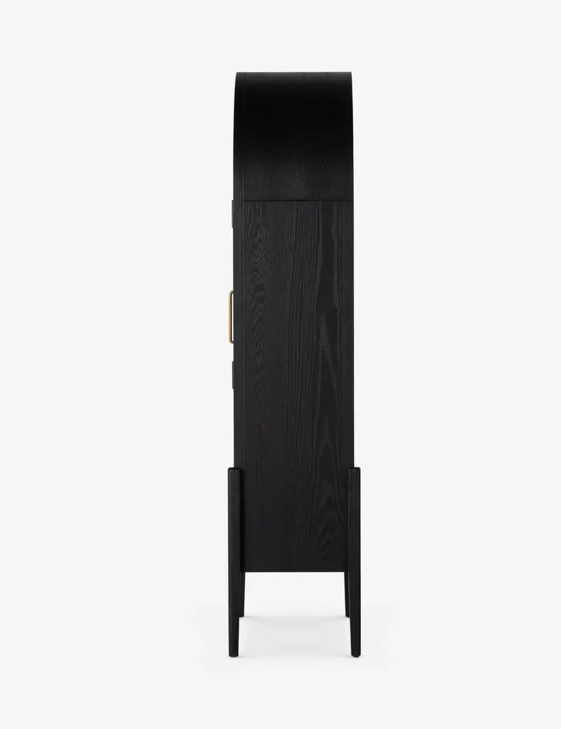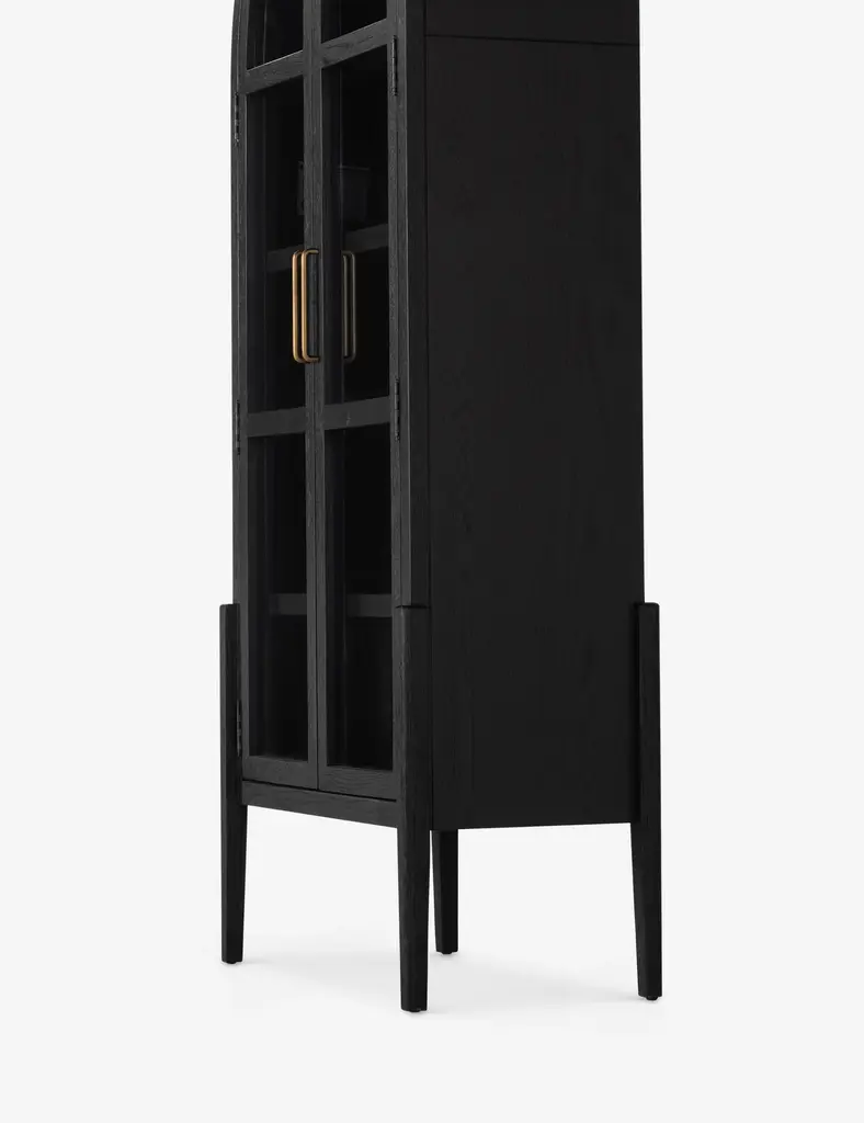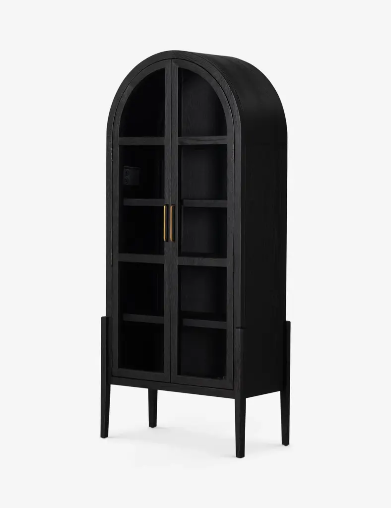 With its stately arched design, this curio cabinet is a showcase piece itself. Its beautifully-crafted solid oak cabinetry features four spacious interior shelves and a clear glass front, ready to display special-occasion dinnerware, favorite books, and treasures.