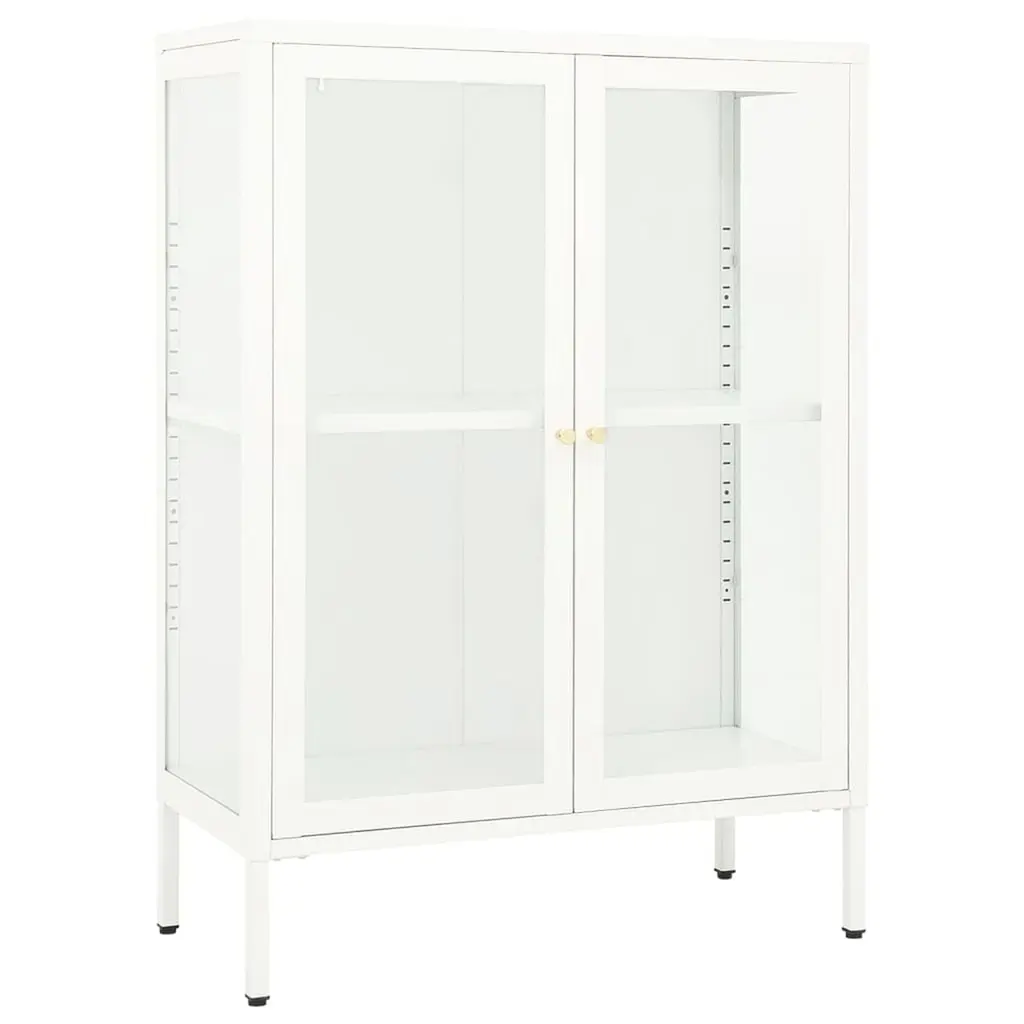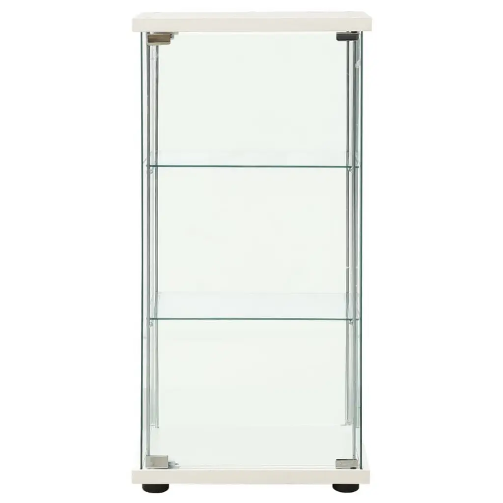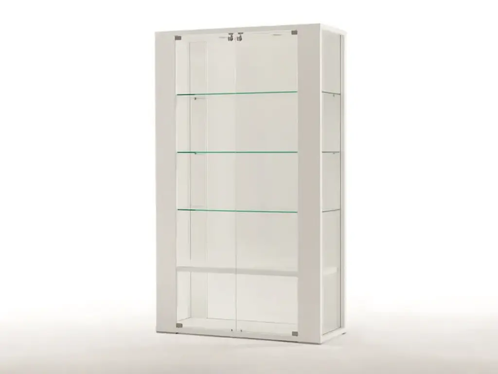 BLÅLIDEN / STRIMSÄV Glass-door cabinet with lighting - white. With a glass-door cabinet, you can show off as well as protect your glassware or your favorite collection. The LED light source consumes up to 85% less energy and lasts 20 times longer than incandescent bulbs.