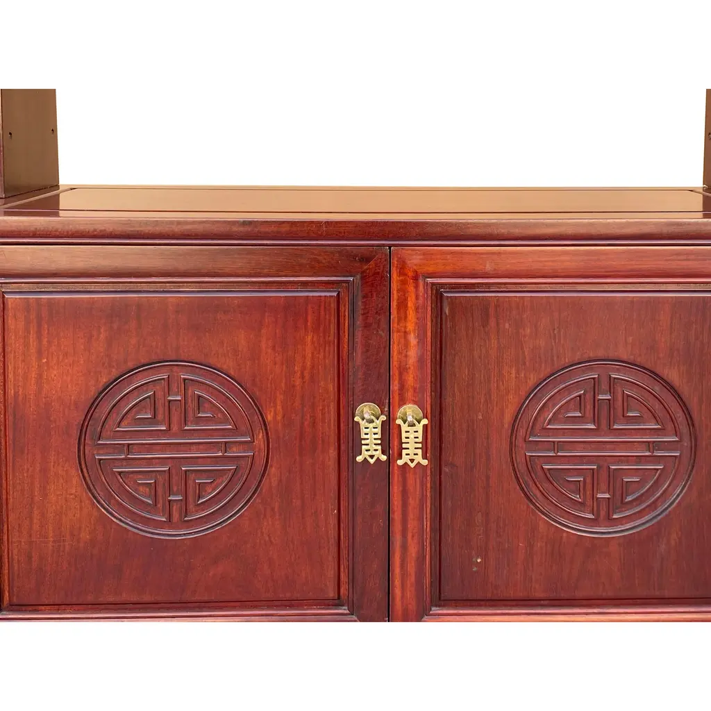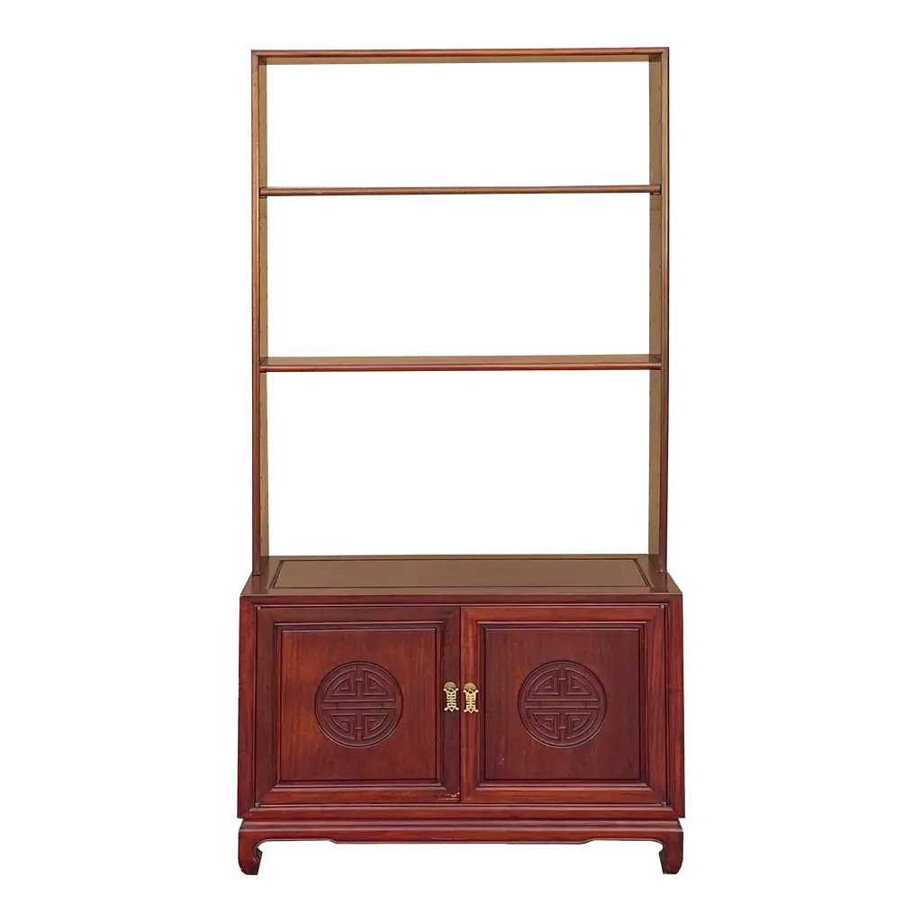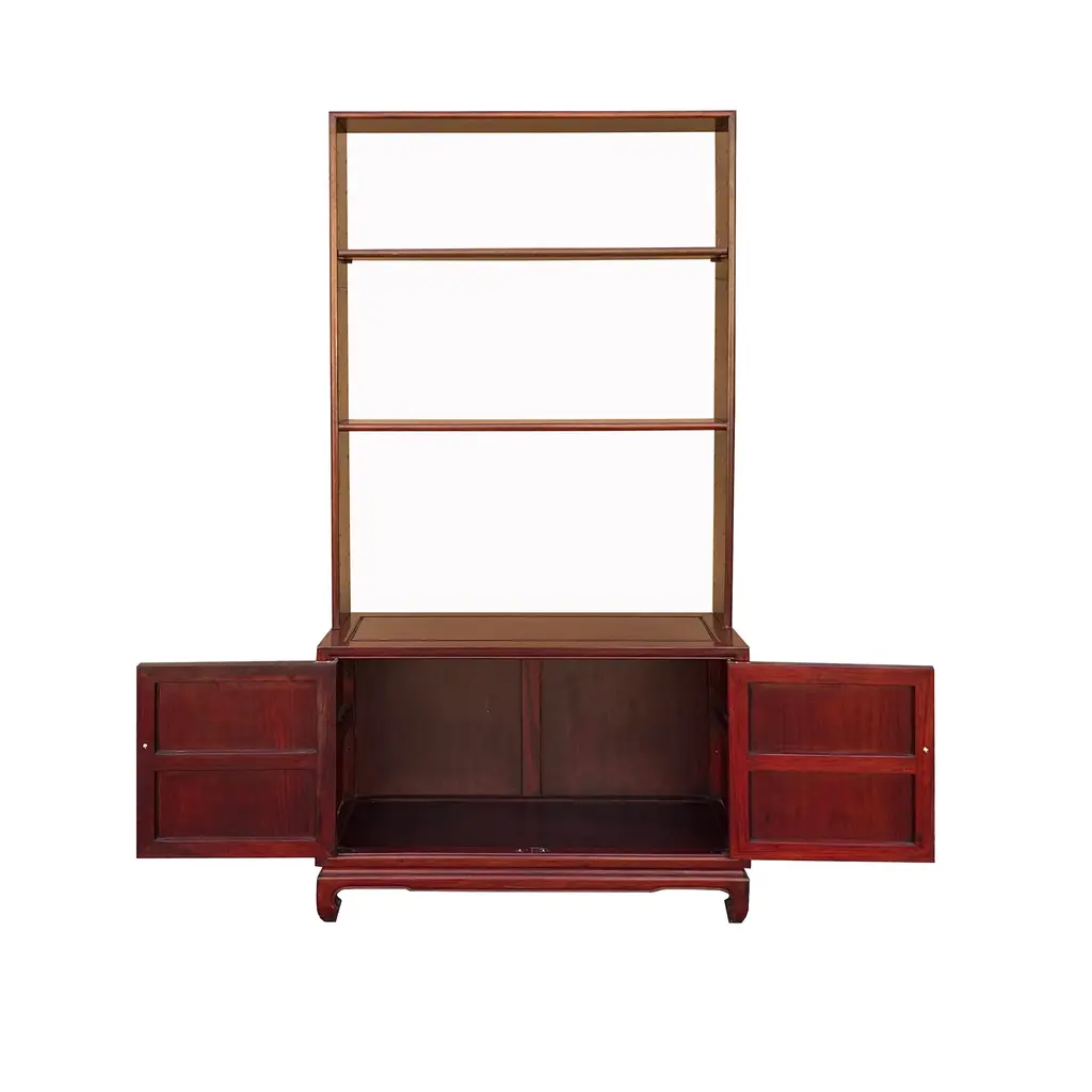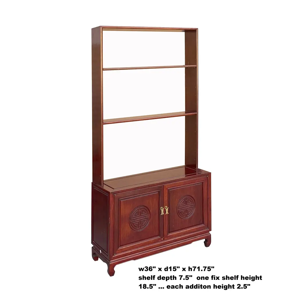 This is an oriental zen simple style bookcase display cabinet with a Mahogany brown stain finish. Two doors storage compartment is for extra storage. One fixed shelf, two adjustable shelves. Dimensions: w36" x d15"x h71.75". shelf depth 7.5", fix shelf height 18.5". each addition height 2.5" Origin: China Material: Elm Wood Condition: Wood joint lines, minor wear out marks Work: Handmade, not assembled furniture, ship in one piece. US domestic continental buyer of 48 states pays $380 shipping charge for curbside delivery. Customer from Hawaii, Alaska, US Island, Florida Keywest, and Canada pays extra shipping cost. Insurance and handling charge are already included in the shipping cost. In-store pick-up is highly welcomed if you are in San Francisco Bay Area. (No charge) White-Glove (4-8 weeks transit) service can be arranged with additional cost - needs quotation based on the destination. When your shipment is delivered, carefully inspect the outside of the packaging before the delivery personnel leave. It is important to clearly indicate if there is any visible damage to the packaging or items on the delivery paperwork. Carriers usually do not honor concealed damage claims so it is crucial to clearly indicate any visible damage to the packaging or items on the delivery paperwork.
