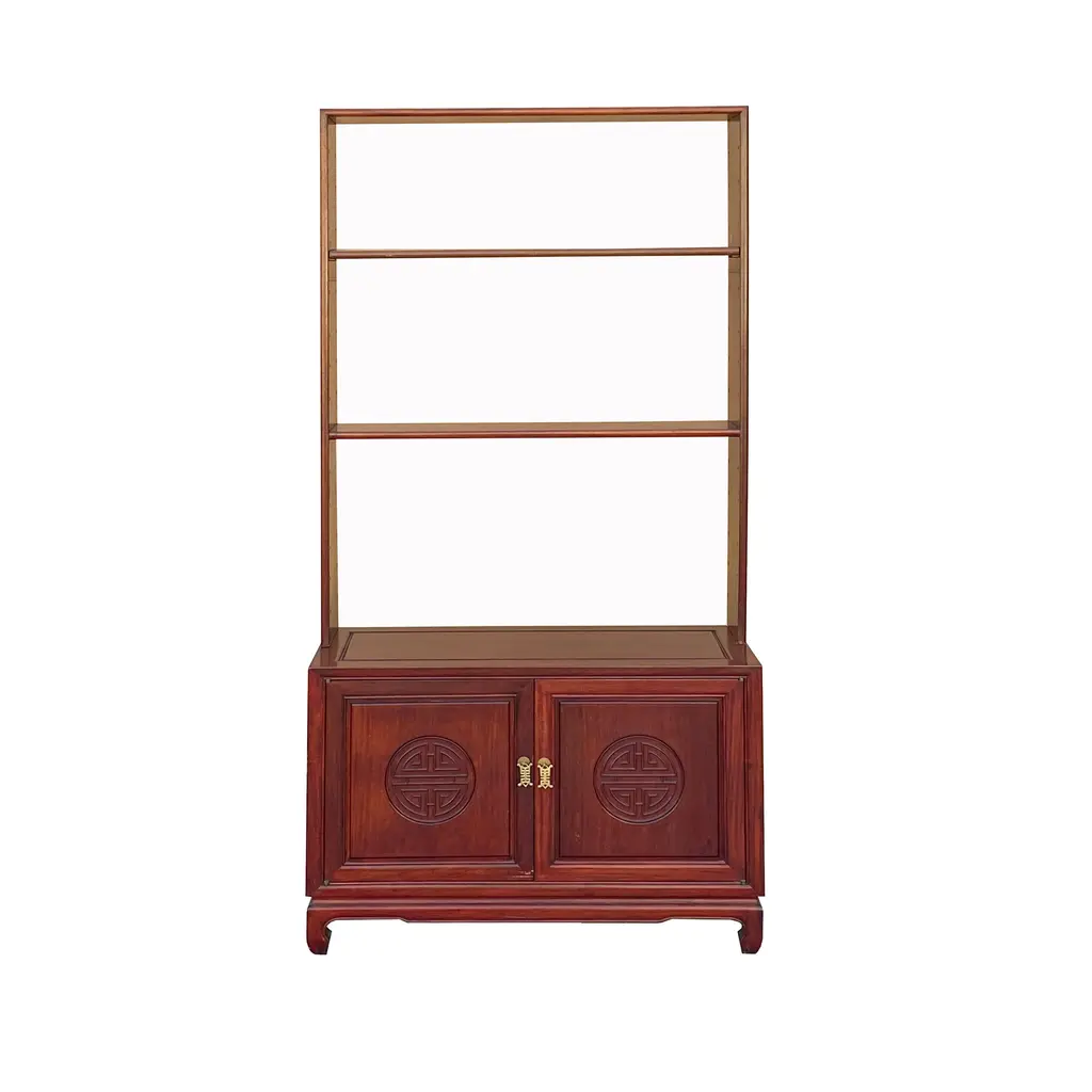 Chinese Mahogany Brown Slim 3 Shelves Bookcase Display Cabinet