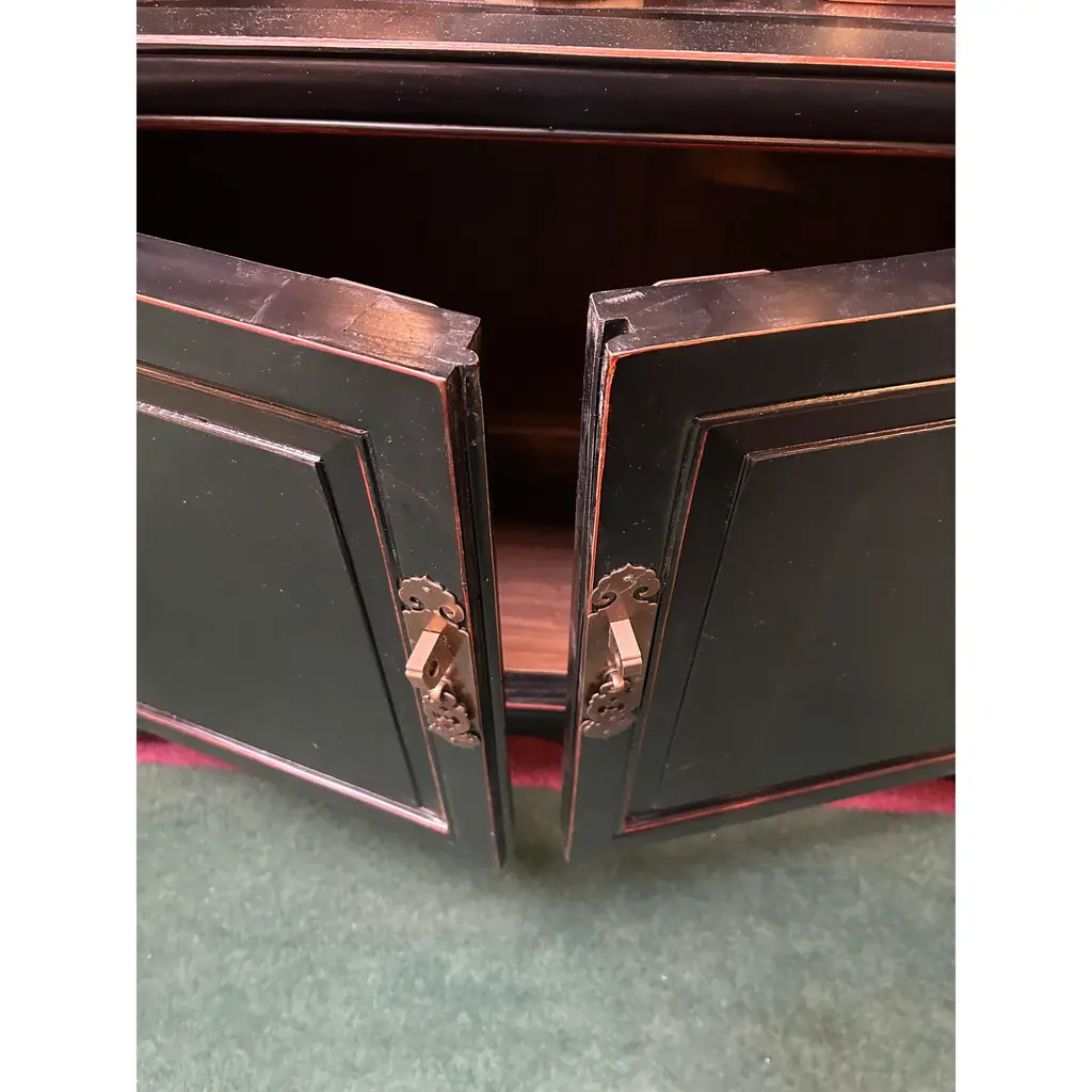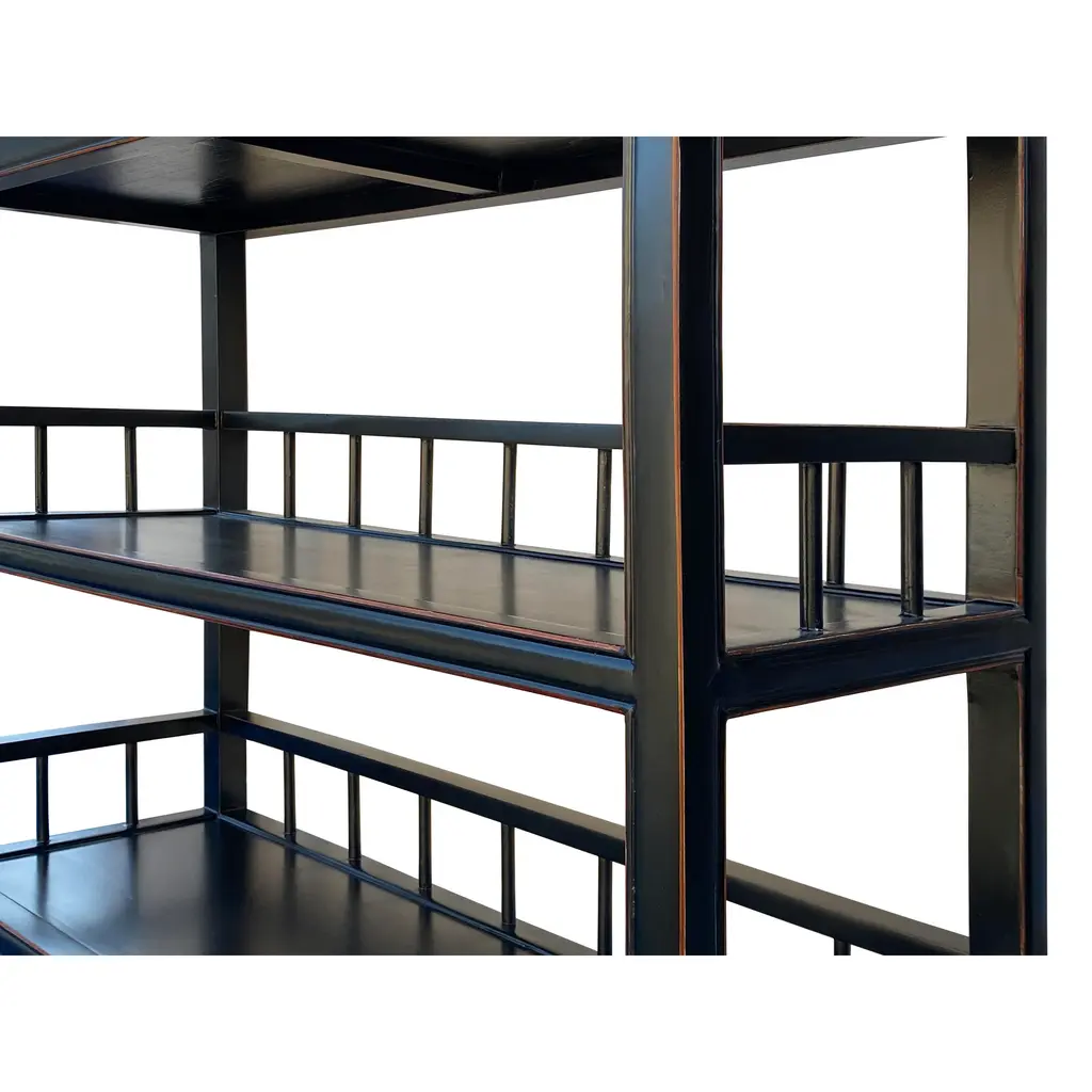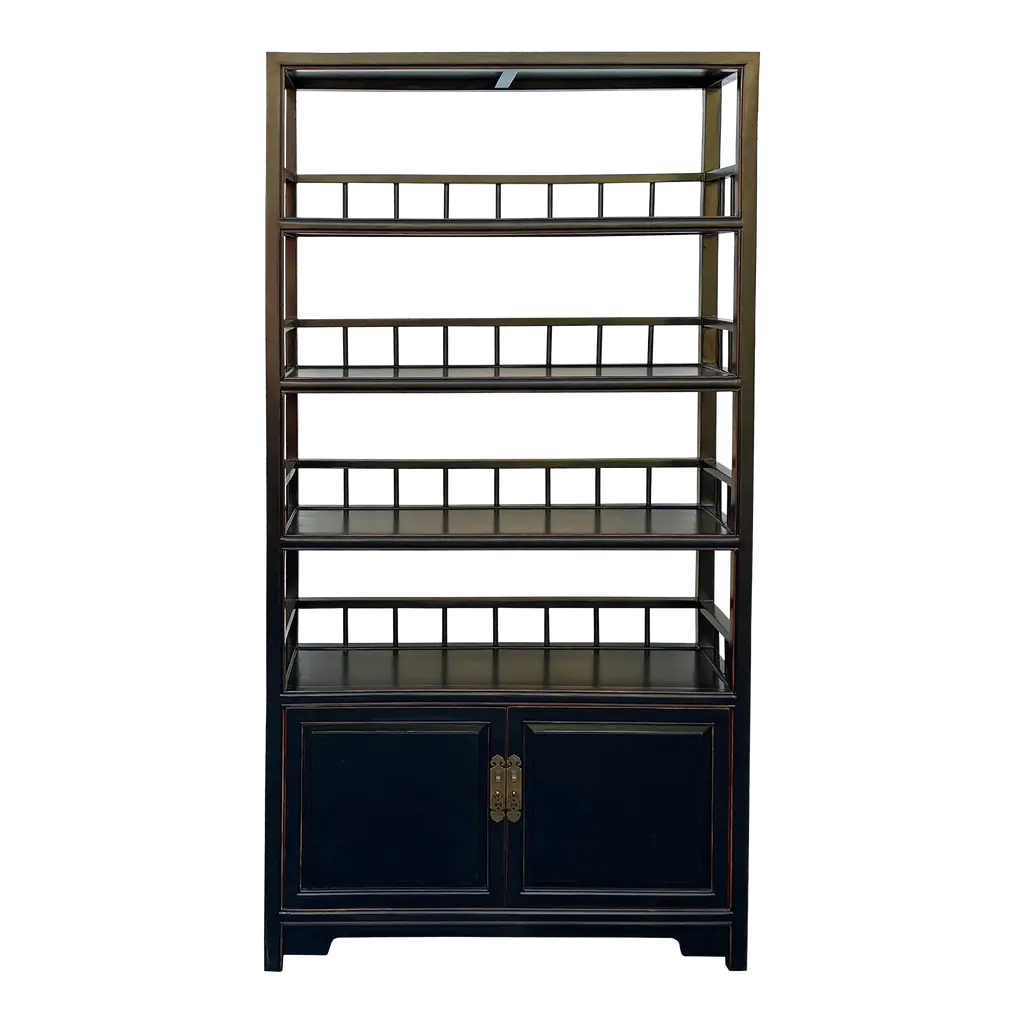 Chinese Oriental Matte Black Lacquer Bookcase Display Curio Cabinet