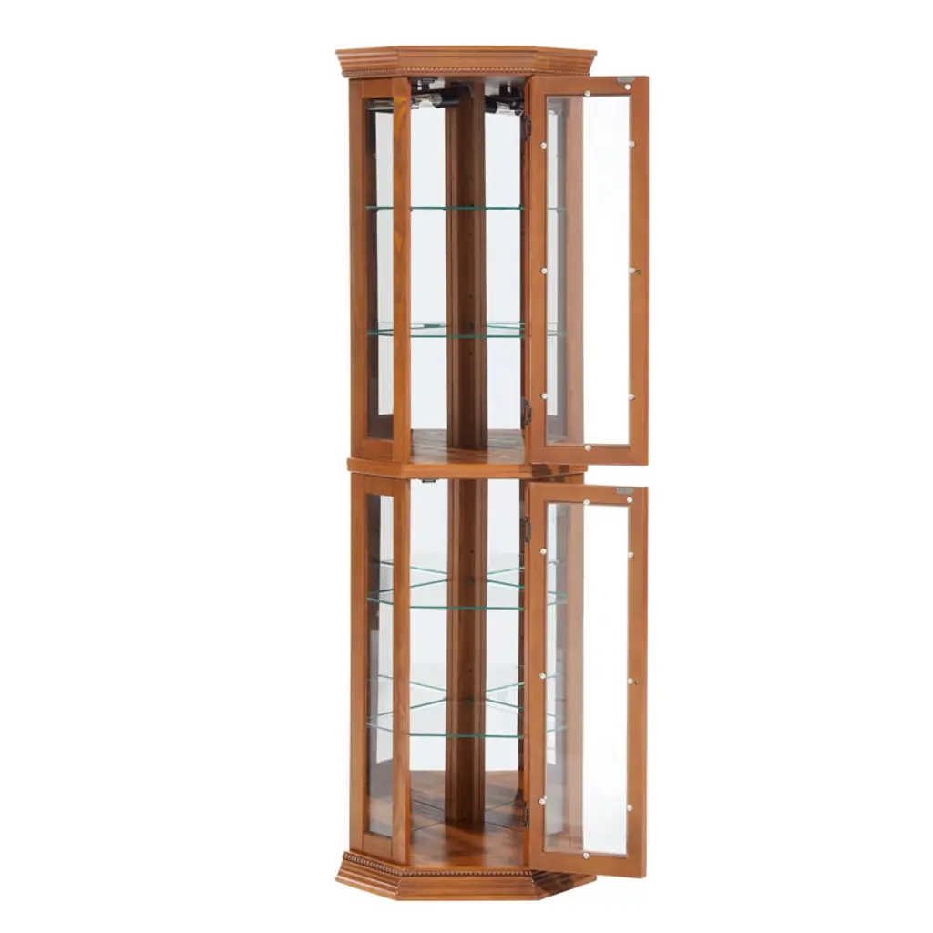 Fontoi Corner Cabinet Corner Display Curio Cabinet, Glass Display With Adjustable Glass Shelves, Oak, 15.35"*69.59"*15.35"